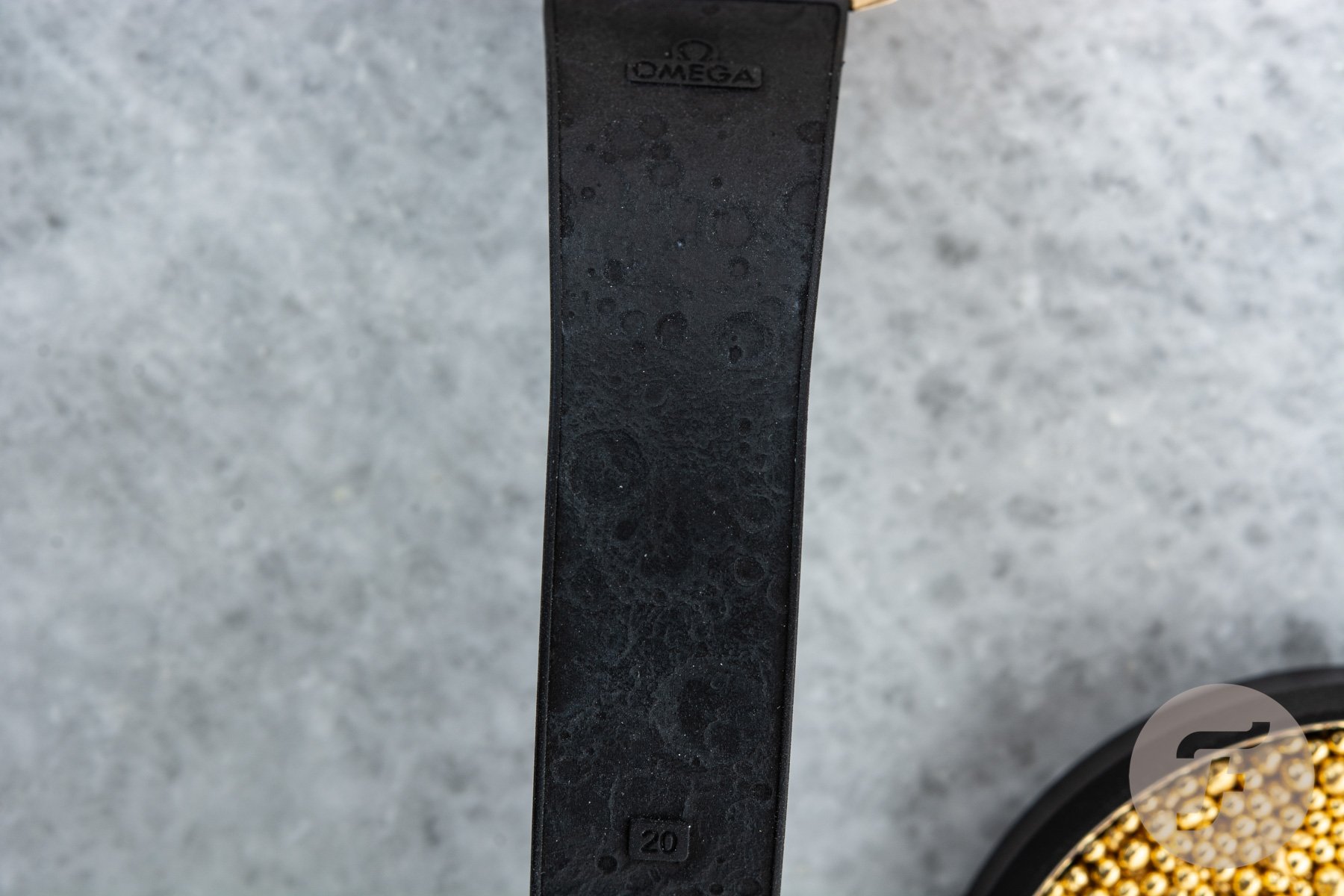 The modern execution also comes courtesy of the new matte rubber strap that Omega chose to use for this model. It’s a first for the Moonwatch to come on a rubber strap and it fits the watch well. In good Moonwatch tradition, Omega has made it something special. The black rubber strap features a lunar surface texture on the inside of the strap and comes with a Moonshine Gold foldover clasp. It tapers down from 20mm to 16mm at the clasp. The lunar surface pattern adds both a visual as well as textural element to the strap. Overall the look becomes a bit more sporty without losing that typical Moonwatch feel.