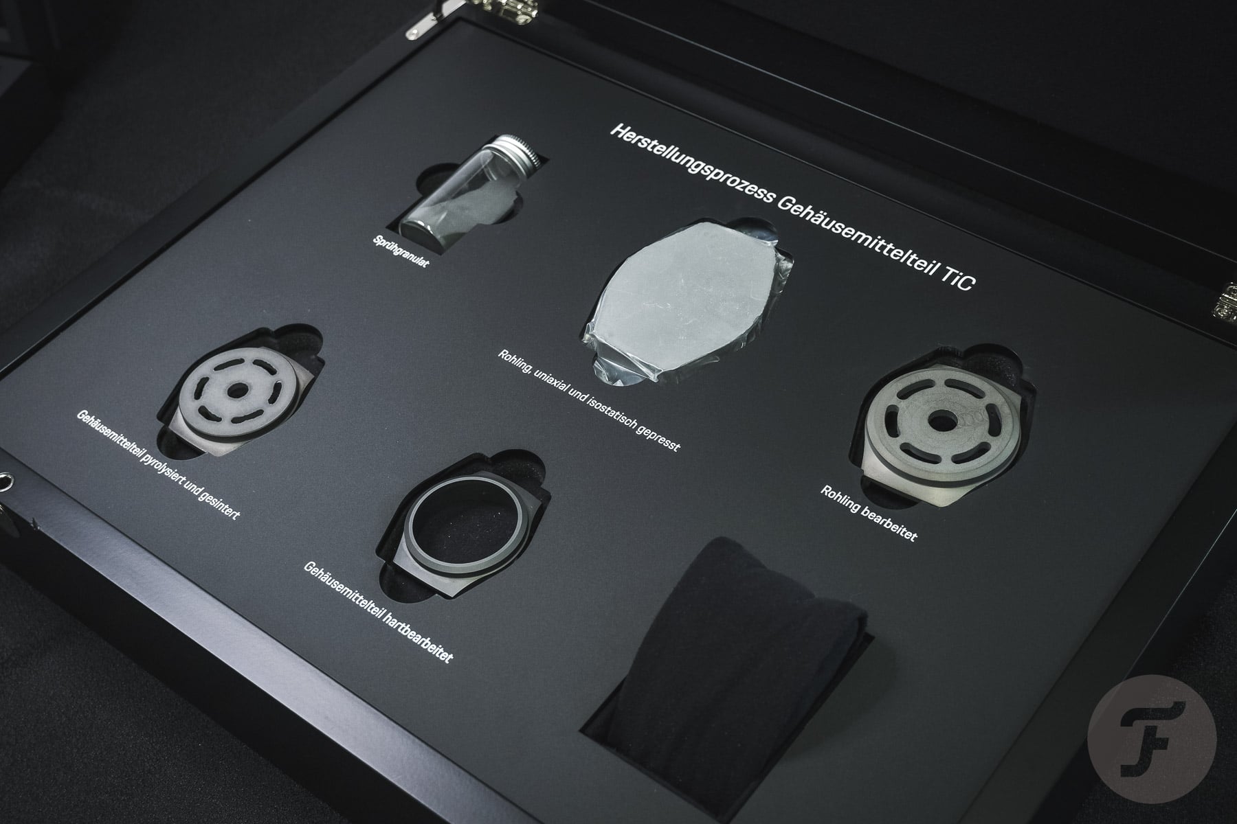 So, what is titanium carbide? Well, according to Porsche Design, it blends the best properties of titanium and ceramics. You get the lightness and toughness of titanium and the hardness and scratch resistance of ceramics. This may sound like IWC’s Ceratanium, but the manufacturing process is entirely different and patented by Porsche Design.