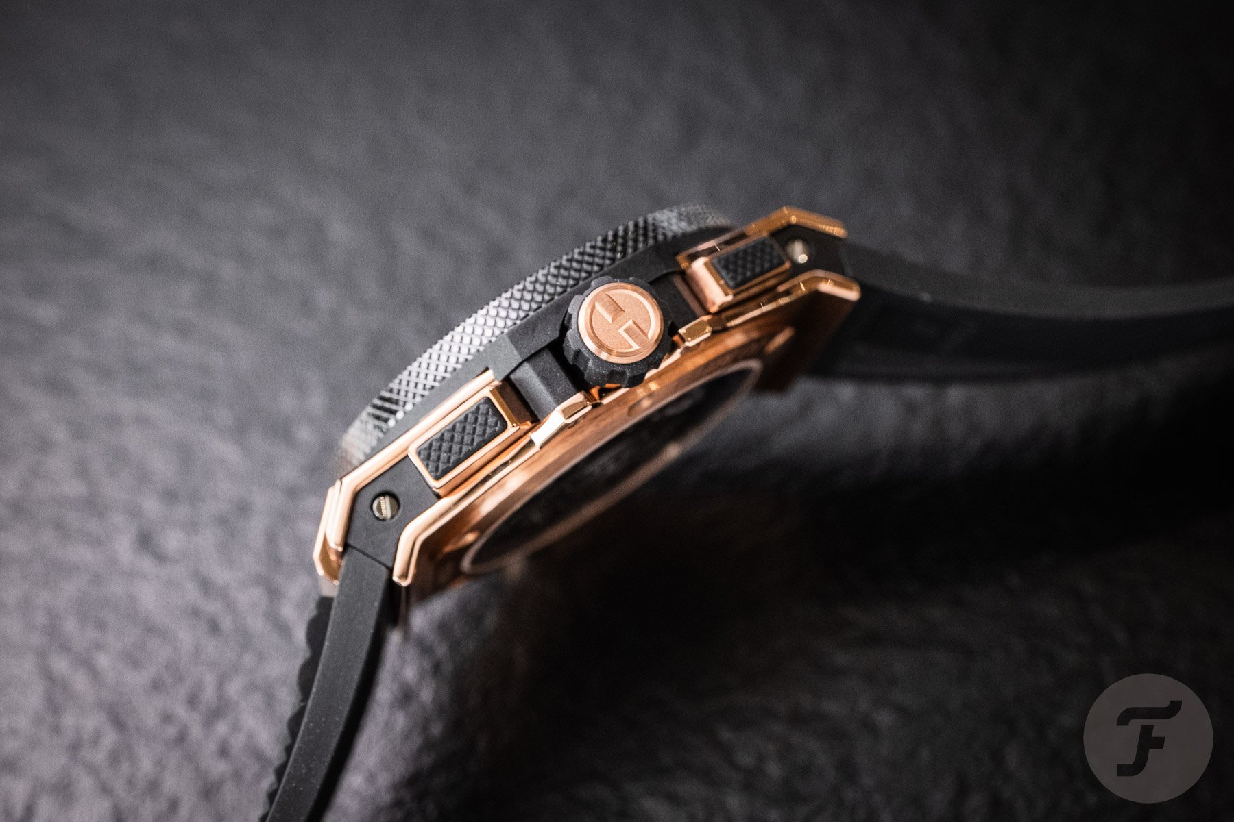 “Fusion” and “alchemy” are two terms heavily featured in Hublot’s marketing. Although the brand intends these terms to reach beyond the material, the material side of things still matters. Hublot prides itself on the technical innovation of materials, which is on full display here.