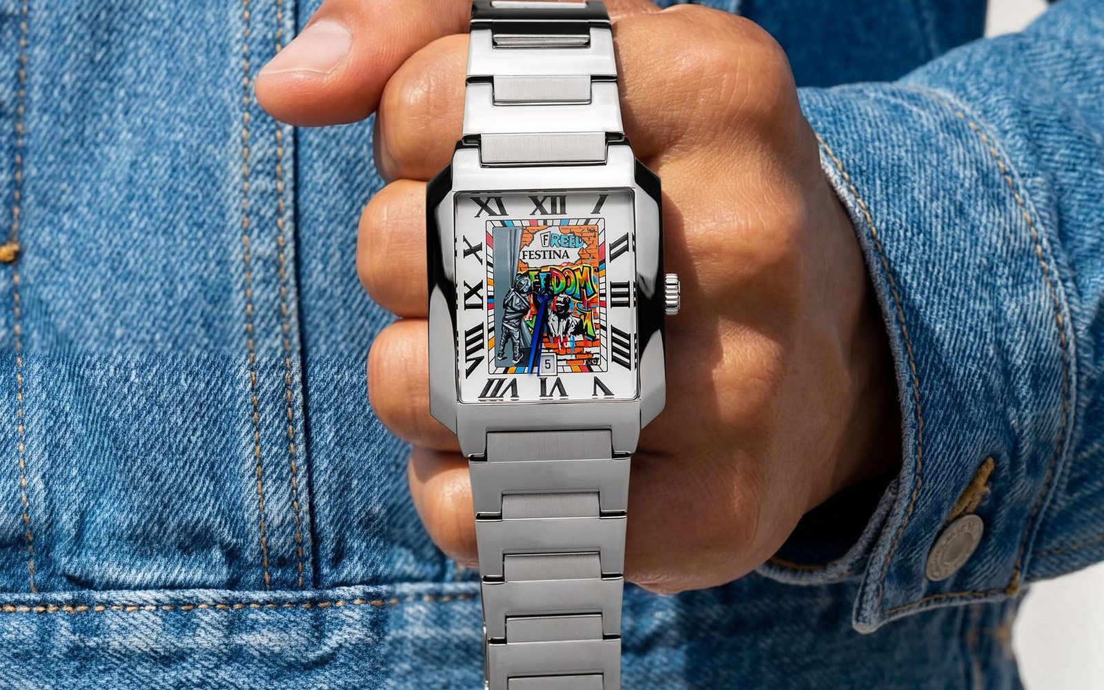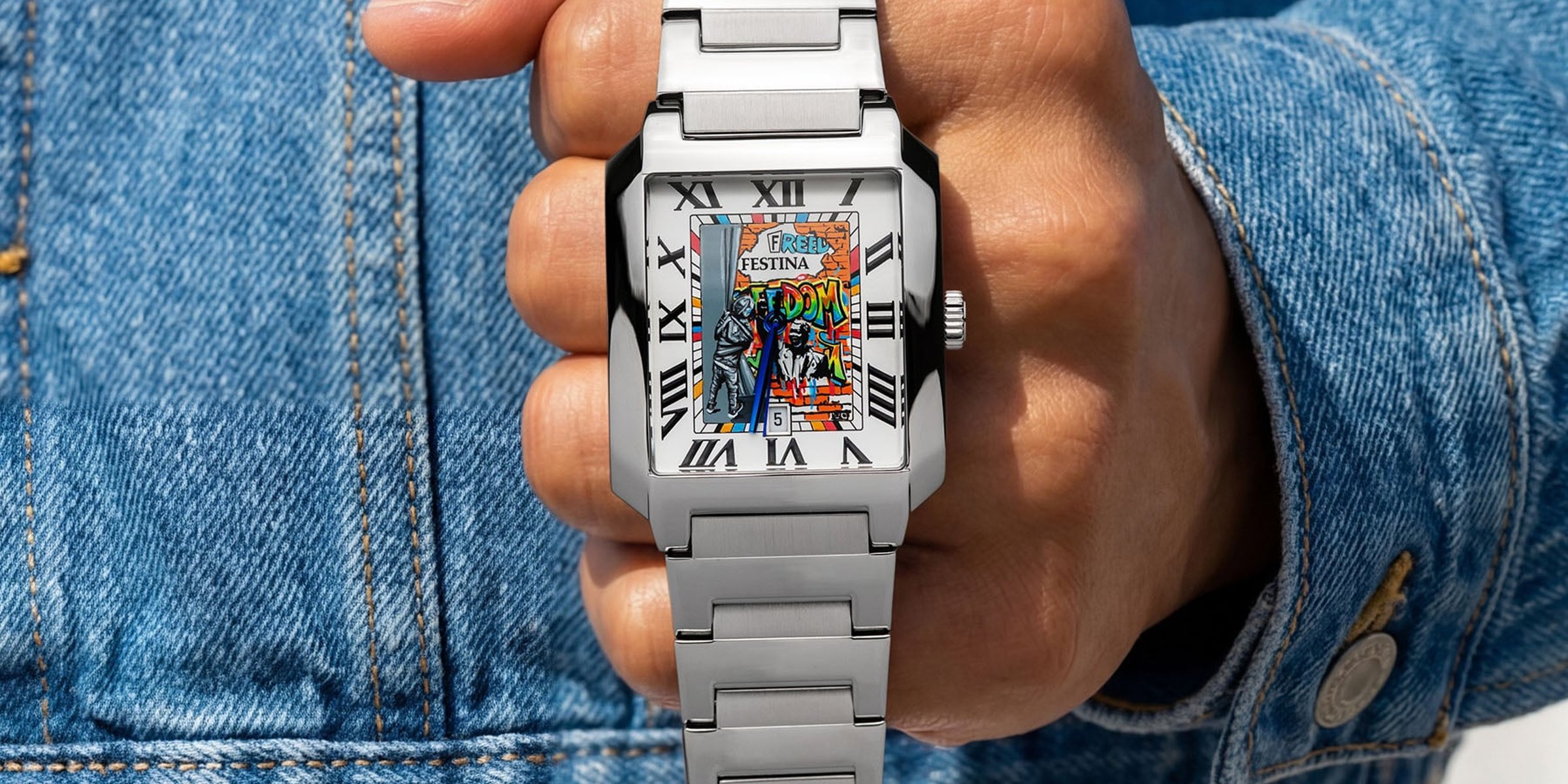 The team at IFL Watches doesn’t sit still. It’s been barely a month since the brand unveiled its fun Citizen Tsuyosa Calavera. For the latest project, IFLW chose a new platform for its artwork. To celebrate the idea of freedom, the brand created hand-painted dials for two Festina On The Square models. The larger 36mm one is targeted at men, while the smaller 29mm version is aimed at women. The team at IFLW created similar artwork for both, combining figurative elements, typography, and protest imagery on their dials. Let’s find out more.