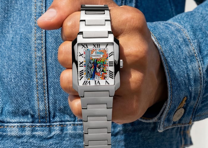 Festina’s On The Square collection is one of its most distinctive, celebrating classic rectangular watches. The two specific models that IFLW chose for its latest project feature a silver-colored dial with Roman numerals and blue hands. Of course, this is the iconic style that Cartier made famous.