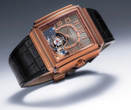 The Ateliers DeMonaco Carre d’Or is a watch that should remind us of the famous and most exclusive squares in the world, located in Monaco between the famous Royal Casino and a number of five star hotels. The Carre d’Or has a convex case design, a patentend Grand Tourbillon movement that uses a sapphire bridge that makes it look like the one minute tourbillon is floating inside the watch.