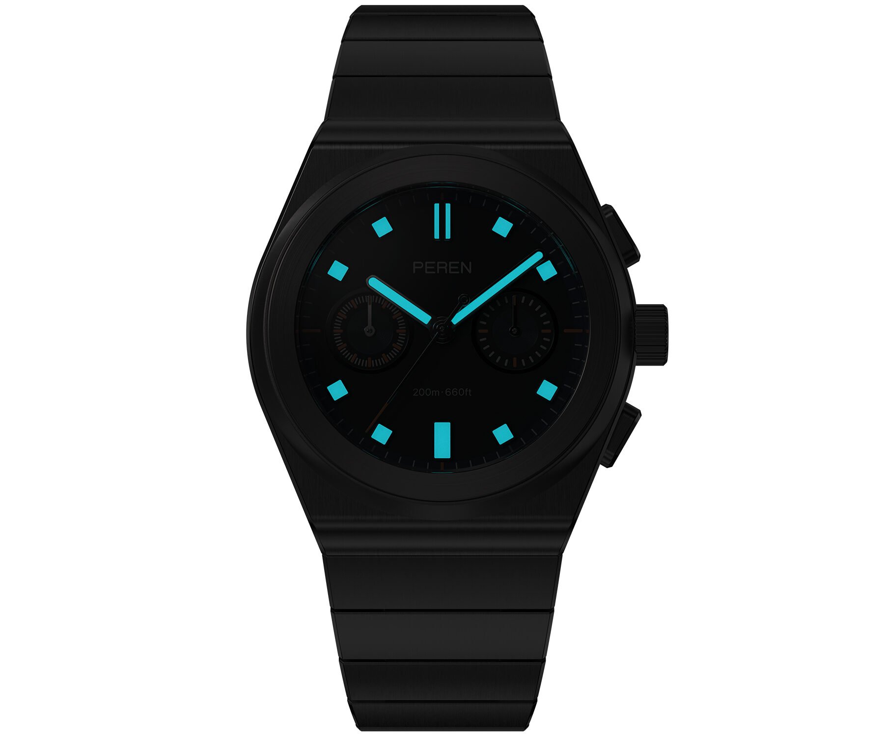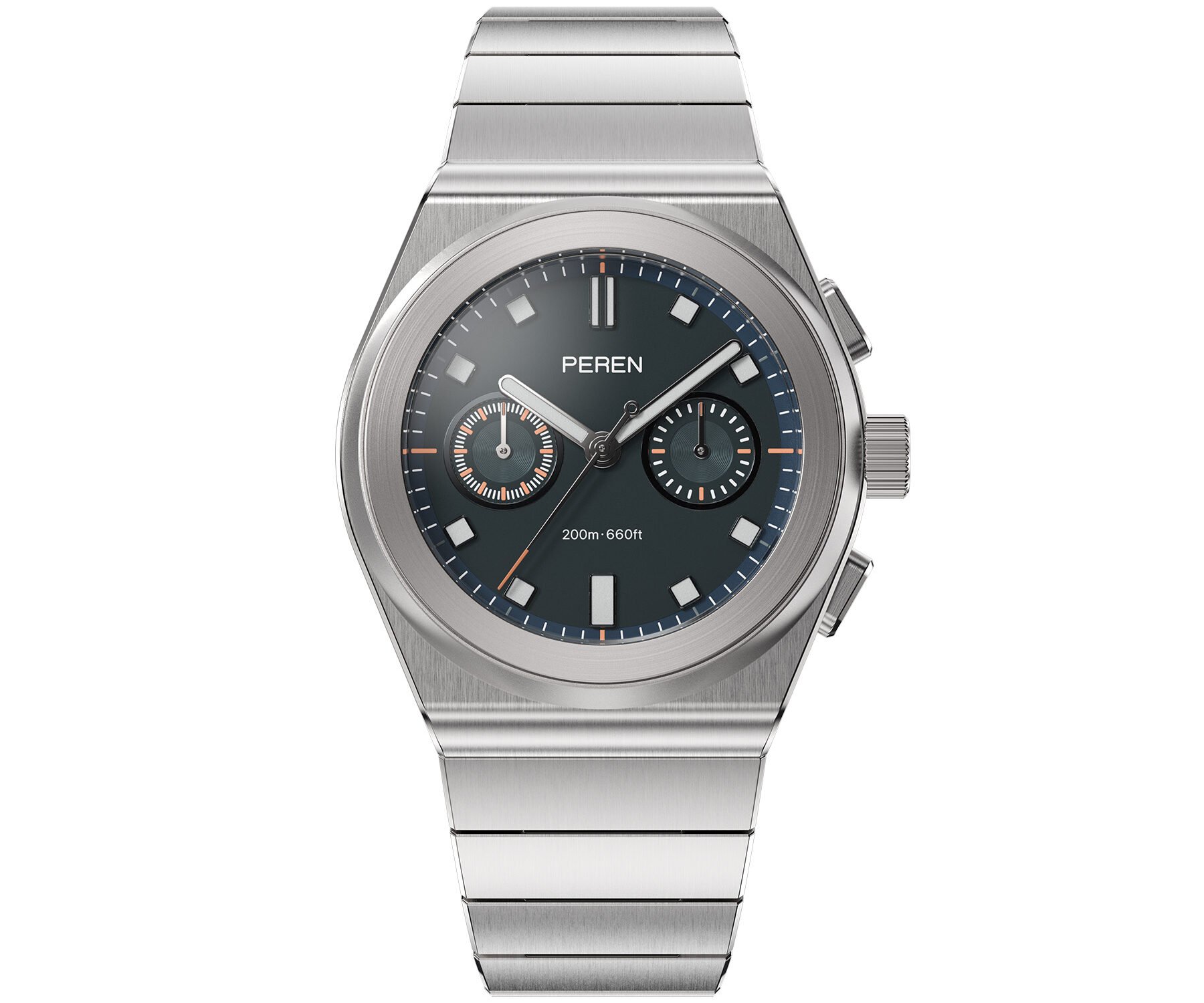 The Seiko VK64 caliber powers the Peren One. As most of you know, this hybrid mechanism combines a quartz movement for accurate timekeeping with a mechanical module for the chronograph functions. As a result, you get mechanical features, like a sweeping central chronograph seconds hand and an instant reset of the chronograph. This caliber also operates at a 32,768Hz frequency and offers hacking seconds. The VK64 is a popular choice for smaller brands seeking to create an affordable chronograph with a reliable movement. Additionally, watch enthusiasts appreciate it because it still showcases the visual cues of a mechanical chronograph caliber.