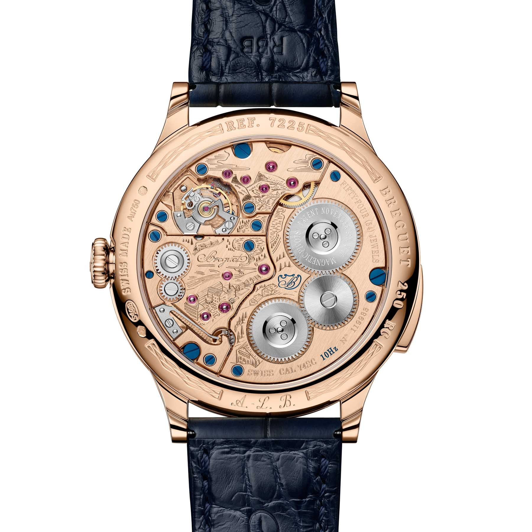 The Bregeuet Classique 7225 is a visual delight, but as we’ll soon discover, the movement is an absolute game-changer. Starting with the case, it uses the brand’s special alloy of 18K Breguet gold and is fashioned with a 41mm diameter and a 10.7mm thickness. While the overall look and the dark blue alligator strap won’t cause anyone to confuse it with a sports watch, the Classique 7225 has a 30m water resistance rating.