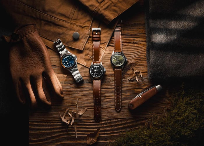 Hamilton, founded as Adams & Perry Clocks in Lancaster, Pennsylvania, in 1874, has a strong military heritage. The then-American brand supplied US troops with watches during both world wars. In fact, production of civilian watches halted altogether during WWII to maximize the company’s military production capacity.