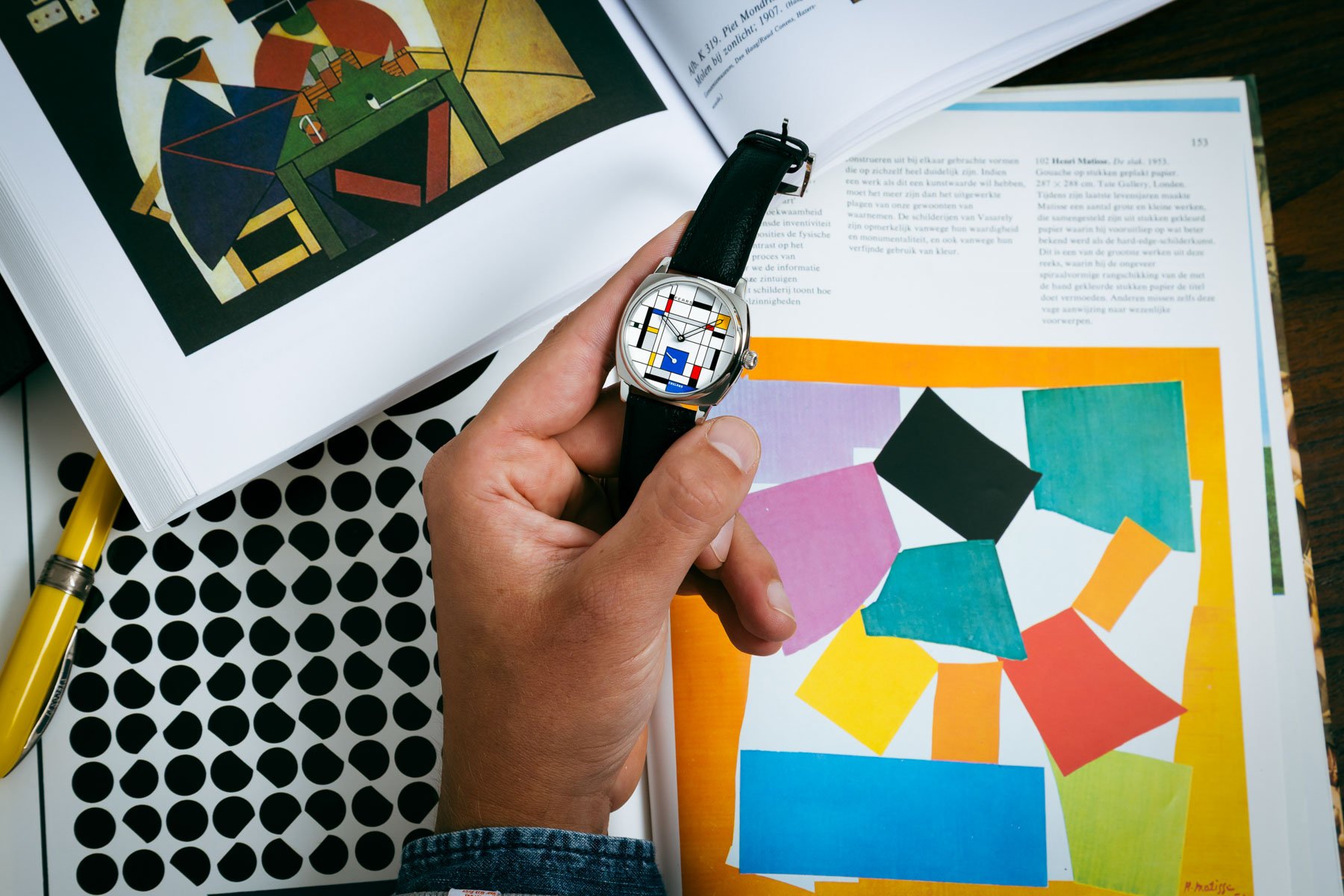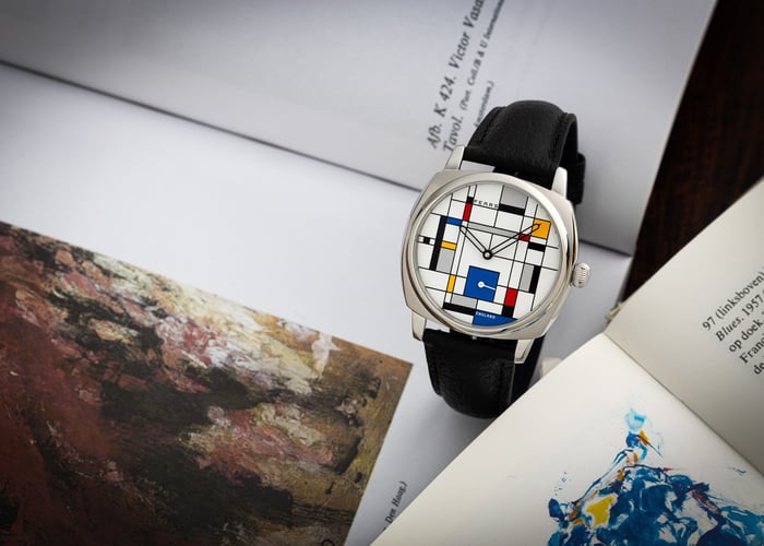 This year, Ace Jewelers closed its standalone boutique on the Van Baerlestraat and moved in with Royal Coster Diamonds. That’s across the street from Amsterdam’s famous Rijksmuseum, the Van Gogh Museum, and the Stedelijk Museum (the museum of modern art). What better way than to celebrate this move into the heart of Amsterdam’s museum district with the art-inspired Fears Brunswick 38 “De Stijl Edition”?