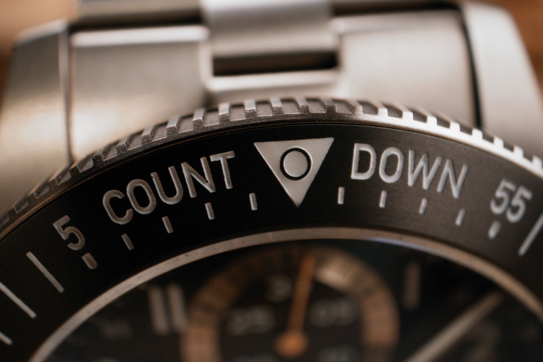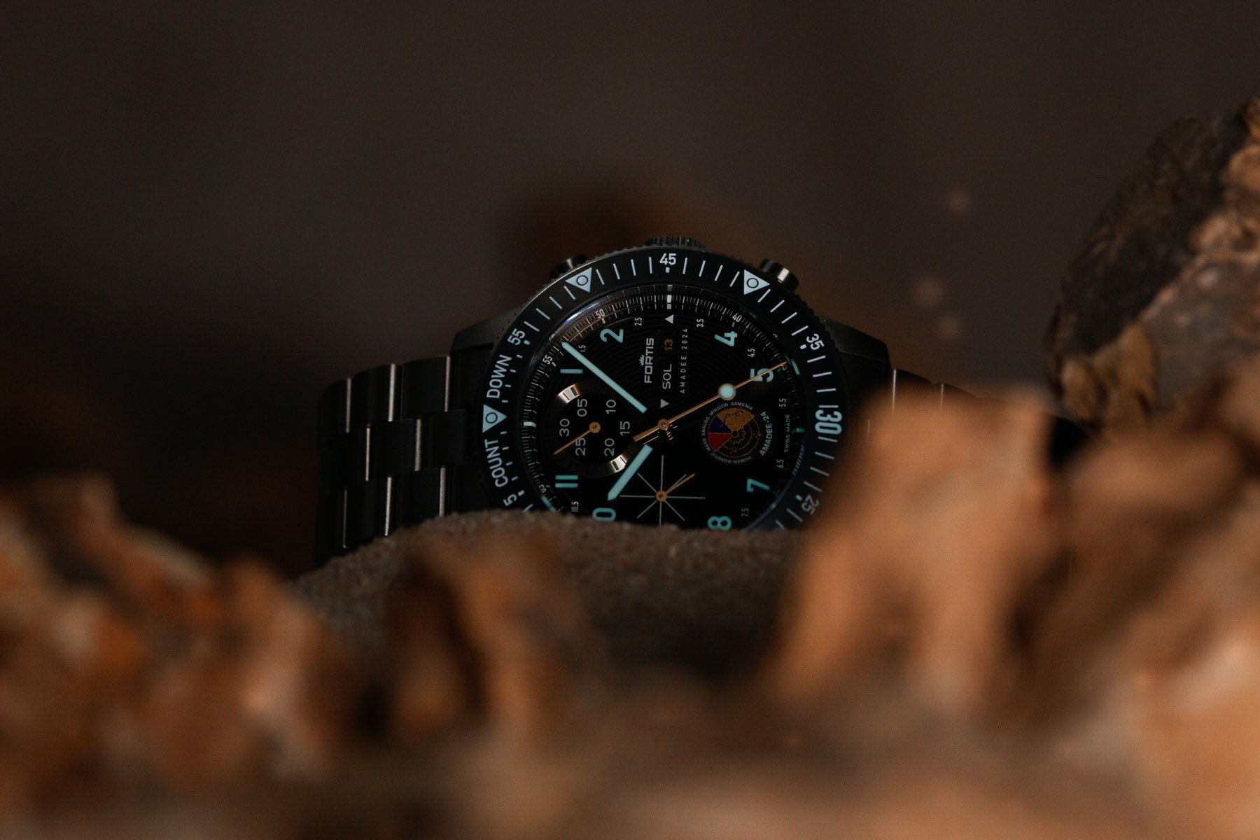 A primary difference on the Fortis AMADEE-24 is its intriguing bezel. It’s matte titanium with Super-LumiNova, unidirectional, and contains a 60-minute scale. However, there’s a countdown function with two 10-minute segments. I reached out to Fortis and asked for more information. The answer makes perfect sense. Due to the distance between Mars and Earth, it takes 10 minutes for communications to transmit. Therefore, upon sending a communication to Earth, an astronaut can move the bezel to the minute hand’s position and measure when the response should arrive. Then, the astronaut can understand roughly when a response should return. This timing gap was used during the entire AMADEE-24 mission between Vienna and Armenia.