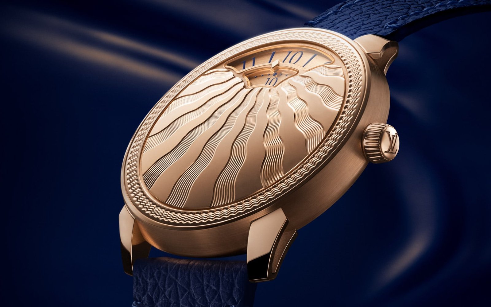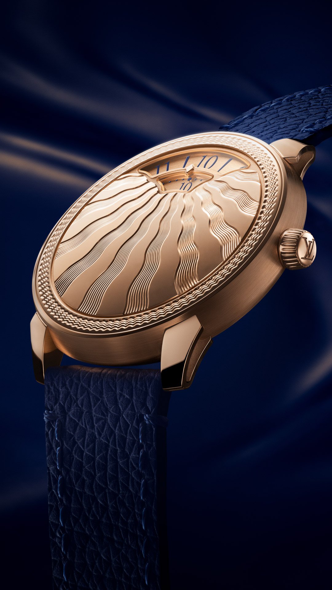 The new Louis Vuitton Tambour Convergence Guilloché retails for €59,500 / US$58,500 / £51,500 and comes fitted with a blue calfskin strap and an 18K rose gold pin buckle.