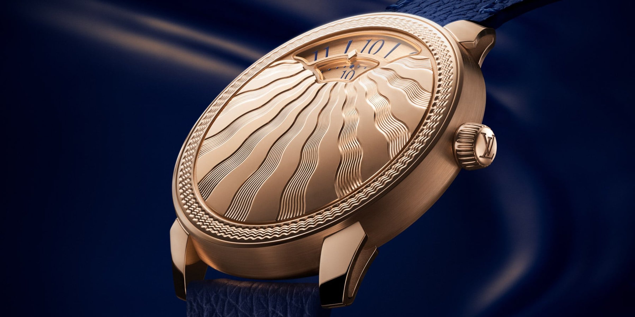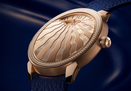 Last year, Louis Vuitton introduced what Thomas called “a bold new effort.” He was right; the Tambour Convergence, a montre à guichet with a mirror-polished rose gold case, was a true stunner. This year, at LVMH Watch Week, Louis Vuitton introduces an enhanced version of the Tambour Convergence. Its mirror-polished façade is now hand-decorated with a rippling halo and an array of undulating rays. Let’s take a quick look at the new Louis Vuitton Tambour Convergence Guilloché.