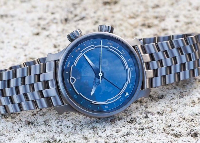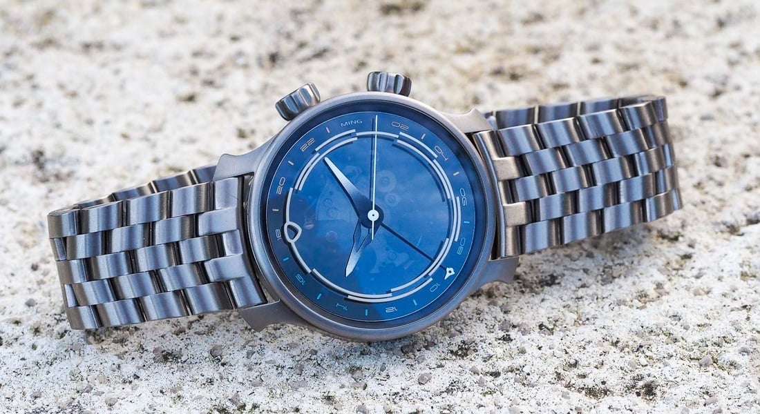 Now, Ming is back with a third take on its double-crown case, and it’s a doozy with a GMT feature. The same 38mm by 44.5mm case remains. However, instead of brushed and polished stainless steel, the watch is crafted from Grade 2 titanium. Of course, this is dramatically different visually and in the hand. Also, while it isn’t a large change, the 12.6mm-thick 37.11 Odyssey is slightly thinner than the Bluefin. It has a 300m depth rating, which is half the capability of its true-diver brethren, but that’s negligible at these levels.