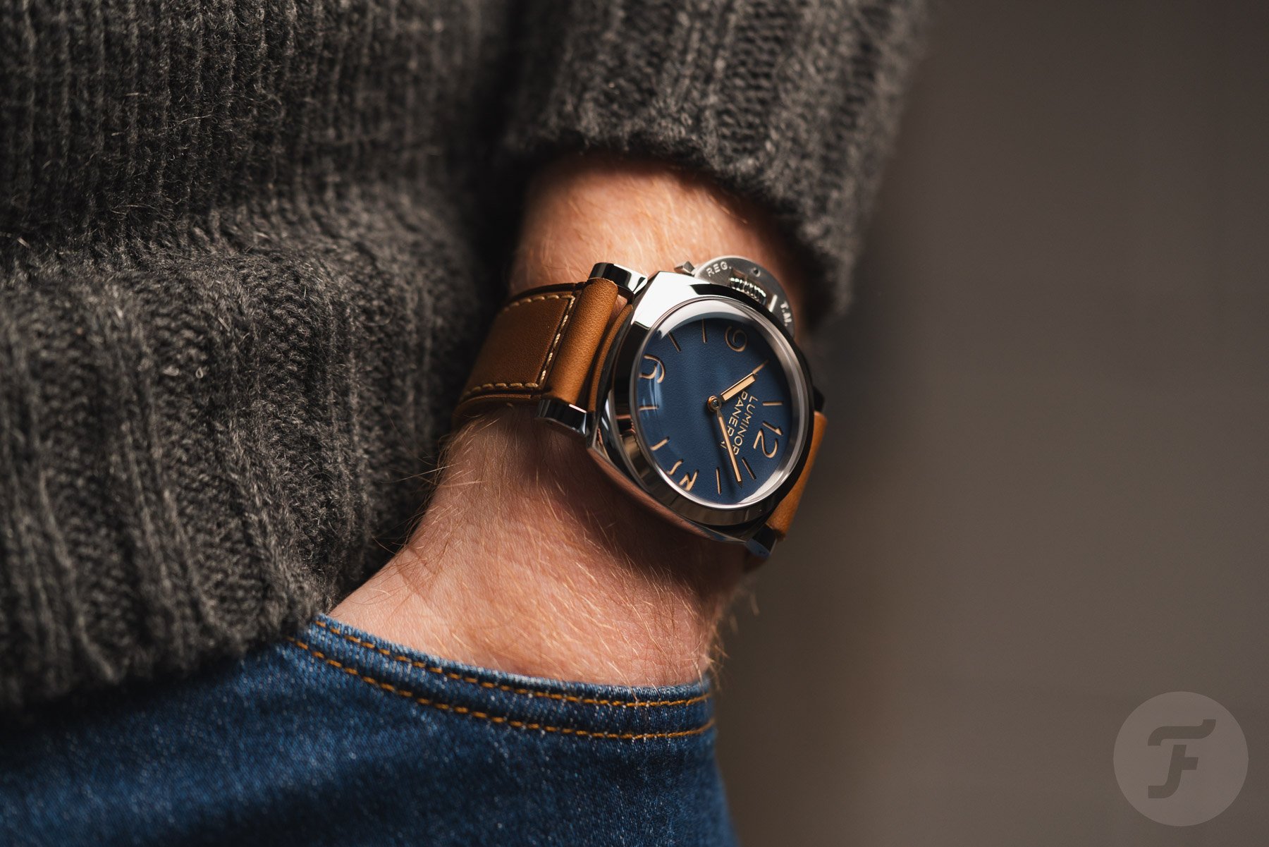 Panerai fans would loudly proclaim their concerns if the brand failed to bring a watch built for the right wrist, or a Destro model, to the party. The Luminor PAM01732 is a 44mm steel beauty in the same form as its tobacco sibling, but it has the signature crown guard on the opposite side of the case. In true Panerai form, the watch has a completely different dial shade because why not shake it up a bit? The PAM01732 has a matte blue dial that might be one of the nicer shades I’ve seen.