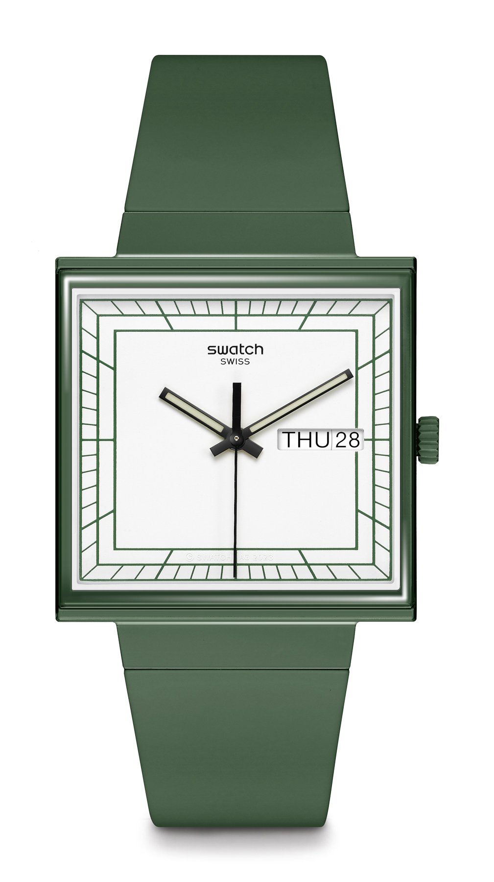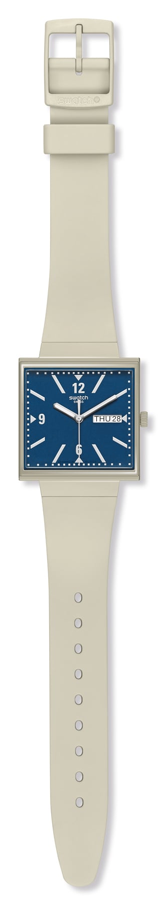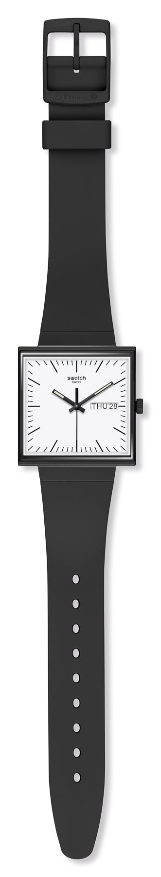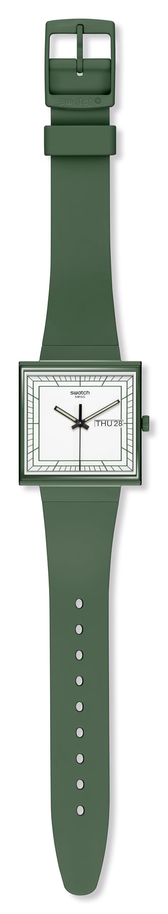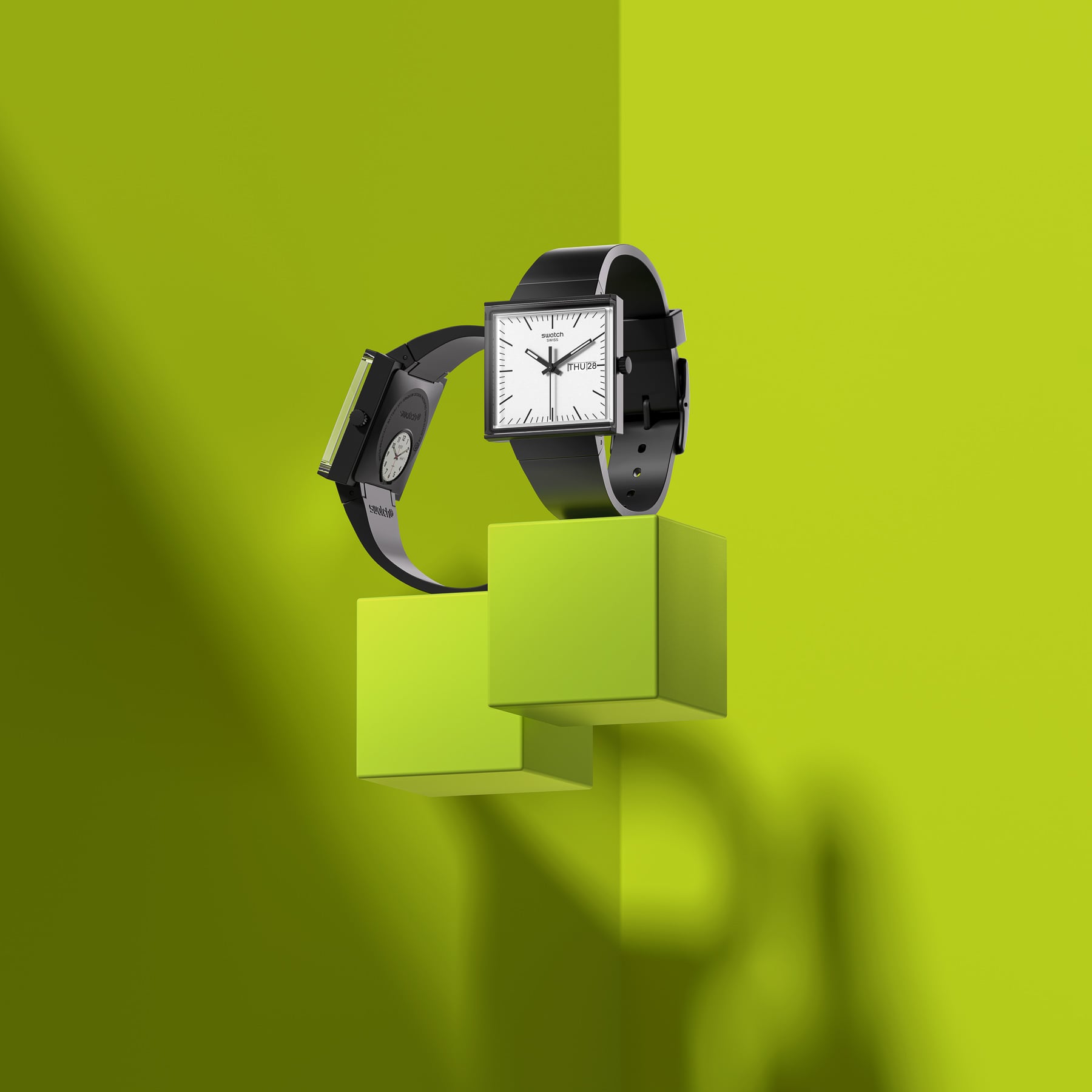 It is the start of the 1980s, and the executives of Swatch are deciding whether to launch their first watch in a square or round case. In a photo of Swatch’s prototypes from 1981, we can make out a square option being considered. But in the end, they chose to focus on the more common round watch face designs. Swatch went on to have a massive influence on the history of Swiss watchmaking. But today, the brand looks back and considers the alternative. Today it introduces the Swatch bioceramic WHAT IF? collection.