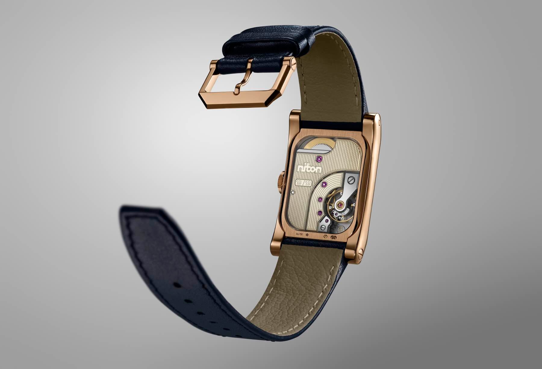 The Niton Prima is available in either 18K rose gold or 950 platinum. The brand will produce 19 in each metal, a nod to the 1919 birth year of the company’s first era. The case measures 27mm across by 42mm from lug to lug. Crucially, the entire thing is no thicker than 7.9mm. Niton gives it a 3atm water resistance rating. While it is always hard to guesstimate a shaped watch’s (or any watch’s, actually) fit by its dimensions, the numbers sound good.
