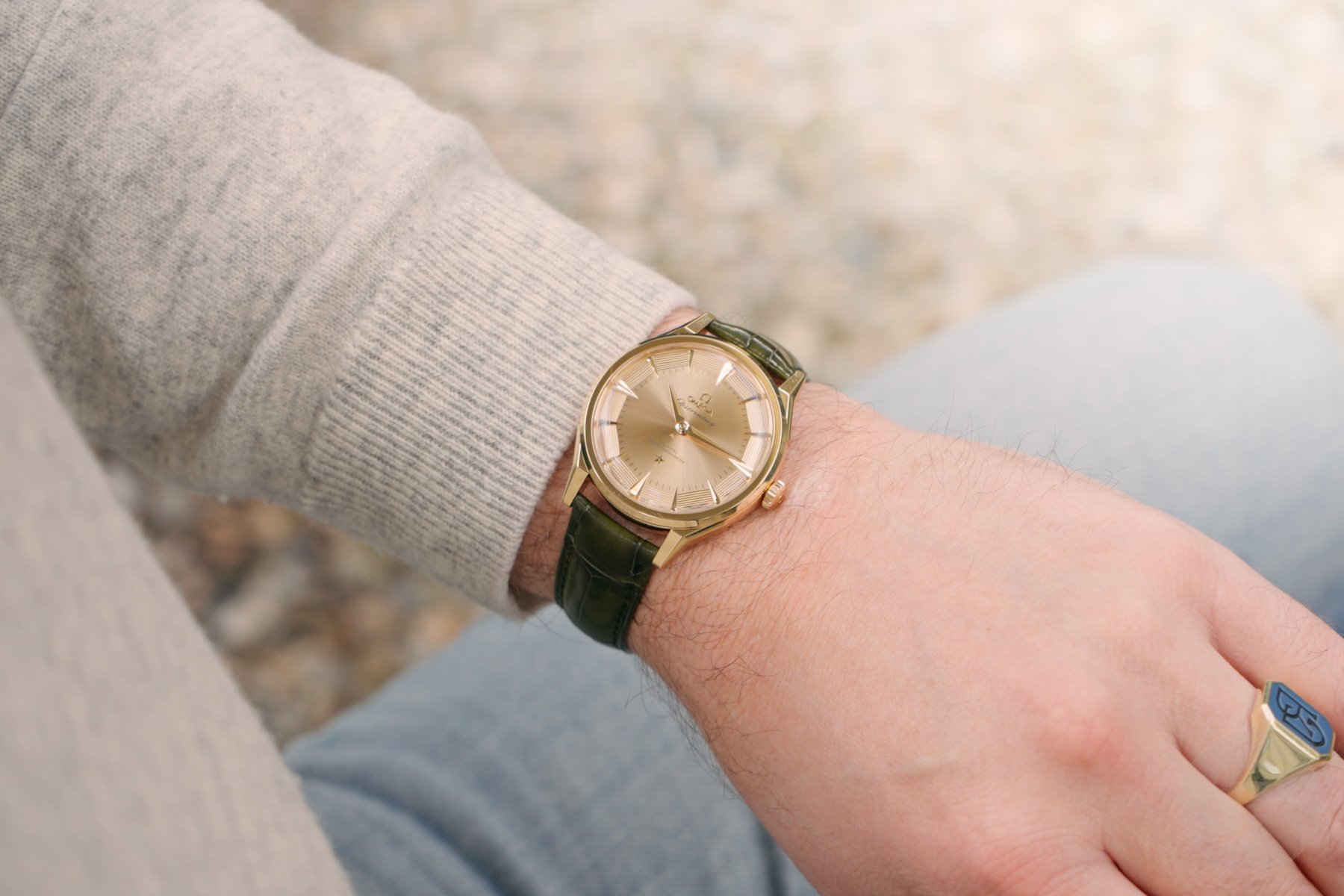 For many years, I’ve had a crush on the Constellation Grand Luxe from the 1950s. The gold pie-pan dials with grooves on the 12 facets and beautiful hour markers are just stunning. Omega did a wonderful job creating the vintage-inspired dials for this new Constellation Observatory.