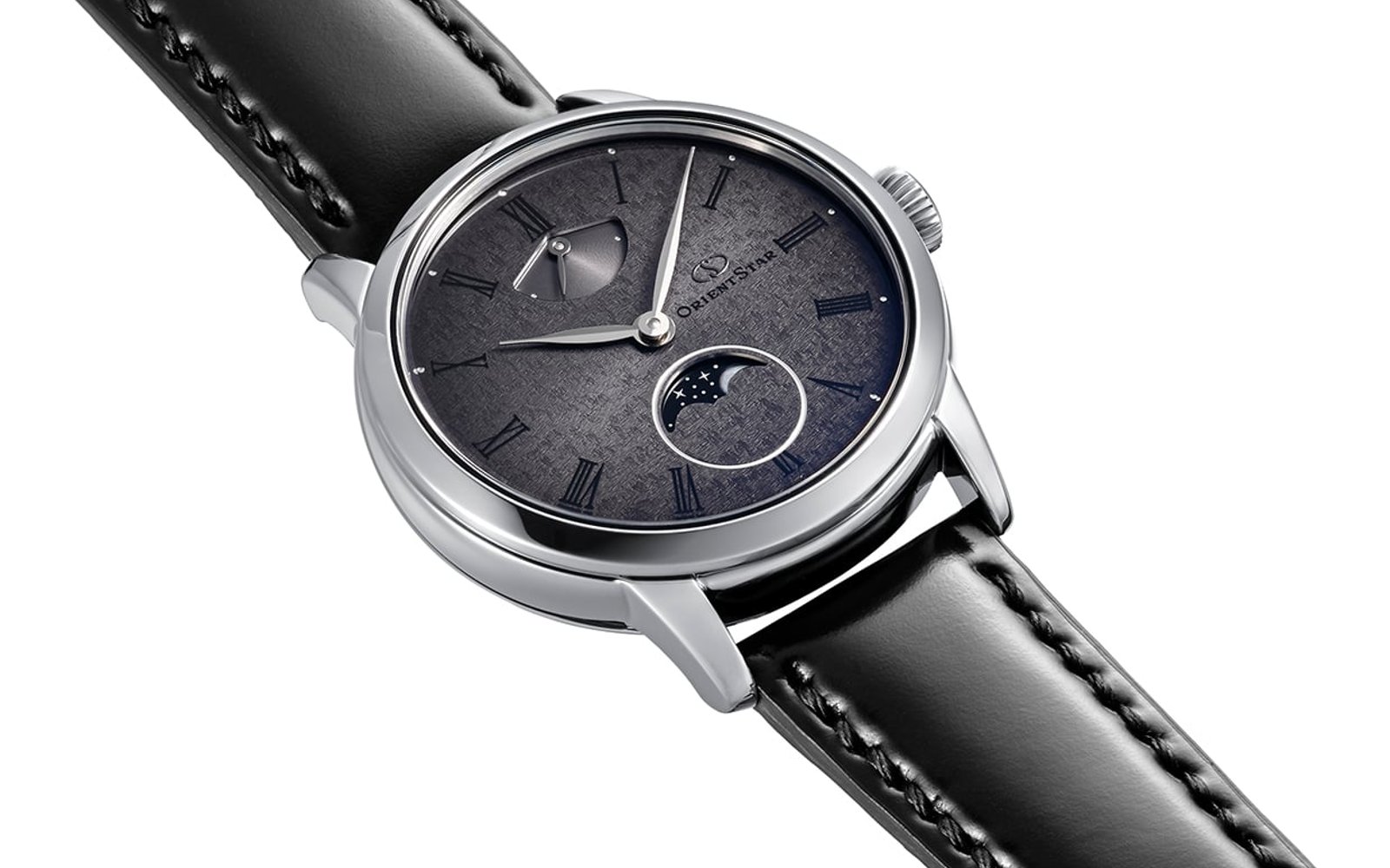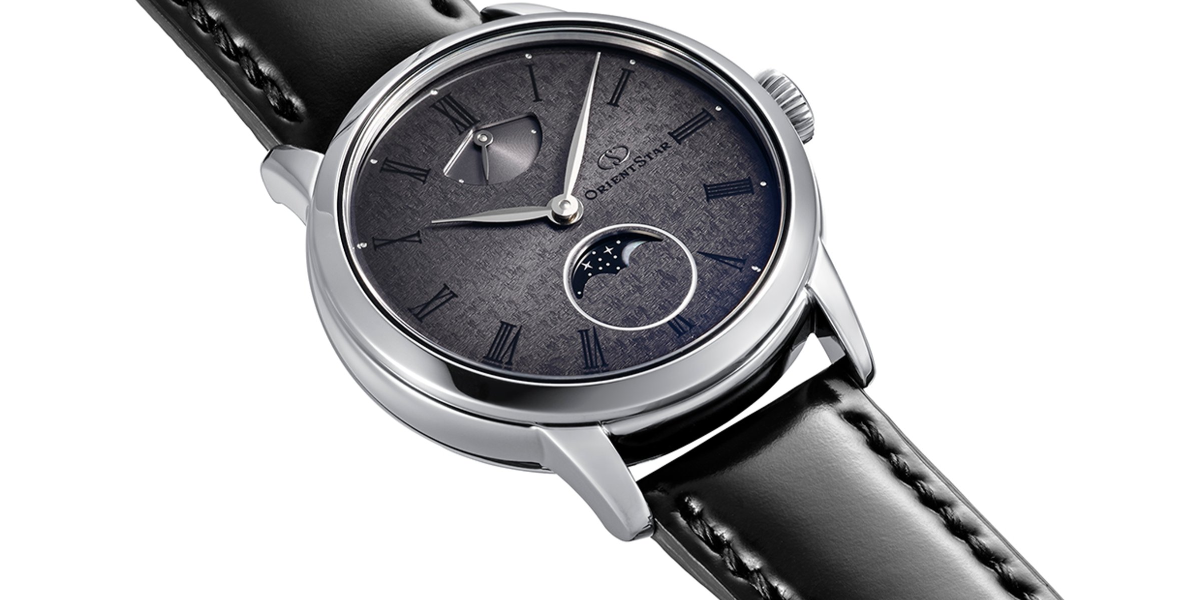 Orient Star unveils a duo of classy timepieces that reflect the graceful passage of time. Compared with recent Orient Star designs, the M45 F8 pares it back to pure functionality and traditional layouts. The Roman numerals add a sense of dignity, and the moonphase complication connects our world to the cosmos. A white-dial variant joins the M45 Classic collection as a standard-production model. Orient Star is also releasing a 140-piece limited edition with a textured gray gradient dial inspired by the Pleiades star cluster. Both watches utilize the brand’s newest in-house mechanical hand-winding caliber, the F8A62, with a 70-hour power reserve. In a 39.5 × 11.9mm stainless steel case, this new Orient Star is a classic dressy timepiece for modern lifestyles. Let’s explore further.