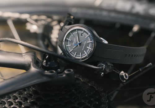 For those who want a carbon Tissot sports watch but are happy with their current ride and can’t mix and match the “P” on the dial with their bike brand, there’s a great alternative. It’s the sporty Sideral. This carbon-cased watch comes in three bright colorways, including one with Tour de France-inspired “Maillot Jaune” accents.