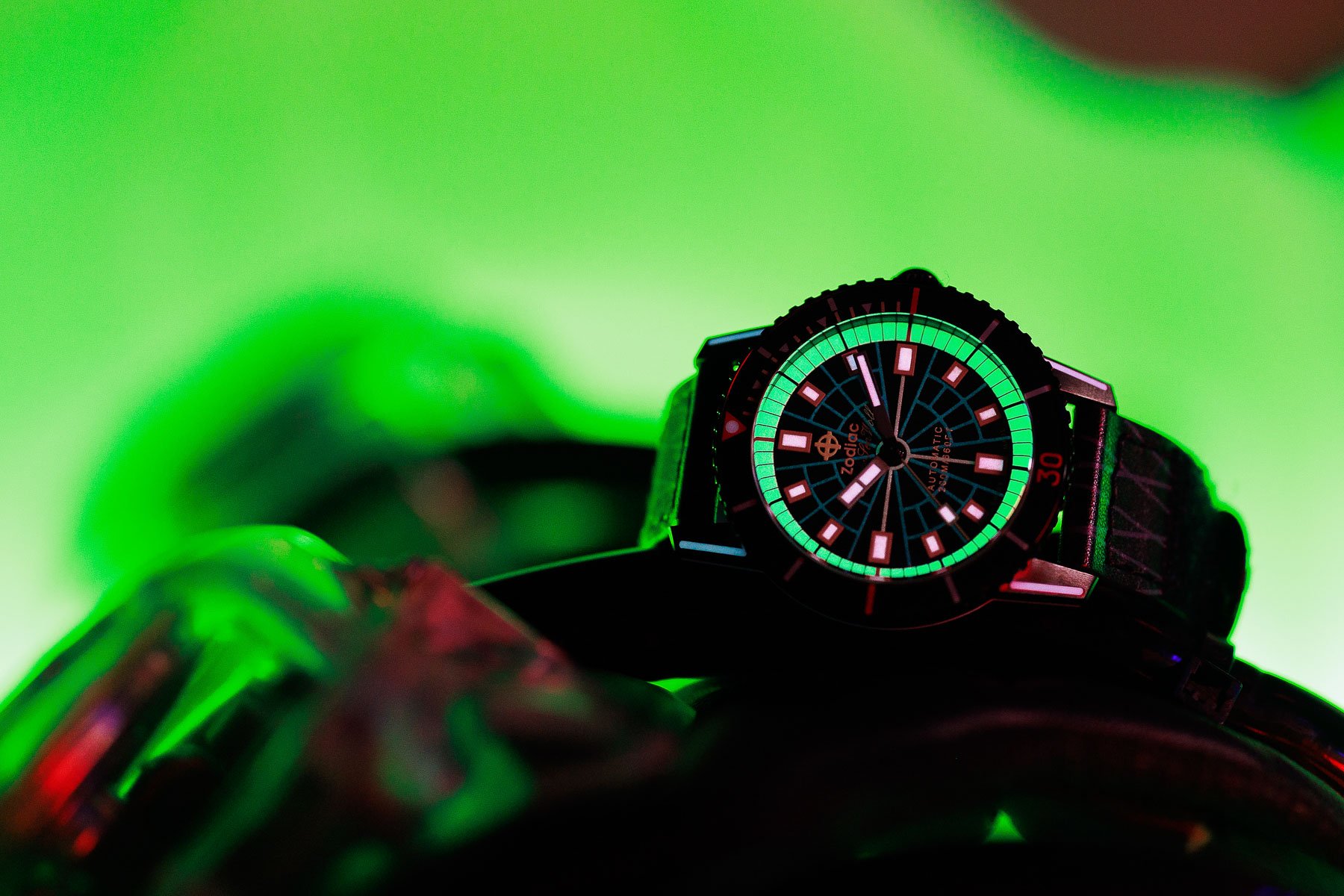 For both versions, an abundance of colors doesn’t seem to work if you just see it written out. But the different colors make perfect sense if you actually see the watches, especially in the context of laser tag. The theme and colors make for two watches that are most definitely not for everyone. I would even say that most people would not even think about these colors in combination with a dive watch. Then again, we have always known Zodiac as a brand that likes to play with bright colors. And while this is a whole new level, if there is one brand I look forward to seeing new colors from, it is Zodiac.