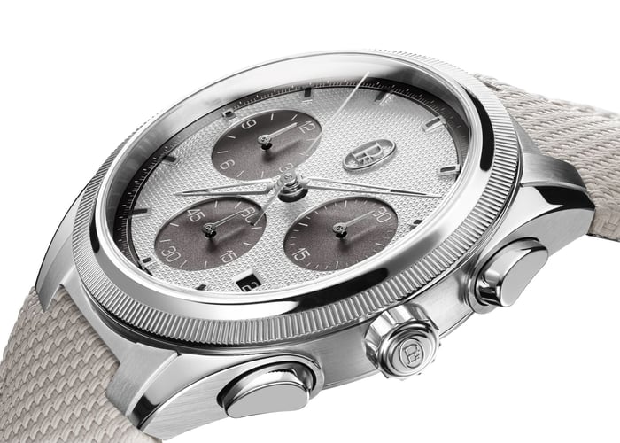 So many brands are jumping on the bandwagon of integrated-bracelet watches, with some claiming to have reinvented the genre. However, what a watch design might gain in cohesiveness it often loses in versatility. The end-link compromise does not look good when changing from bracelet to strap. But this is where Parmigiani designers have risen to the task. Here, it looks natural, and I love it when a watch can be imbued with multiple personalities. The Tonda PF Sport Chronograph exemplifies the smooth transition from a wrist-hugging strap to a slim case for an automatic chronograph.