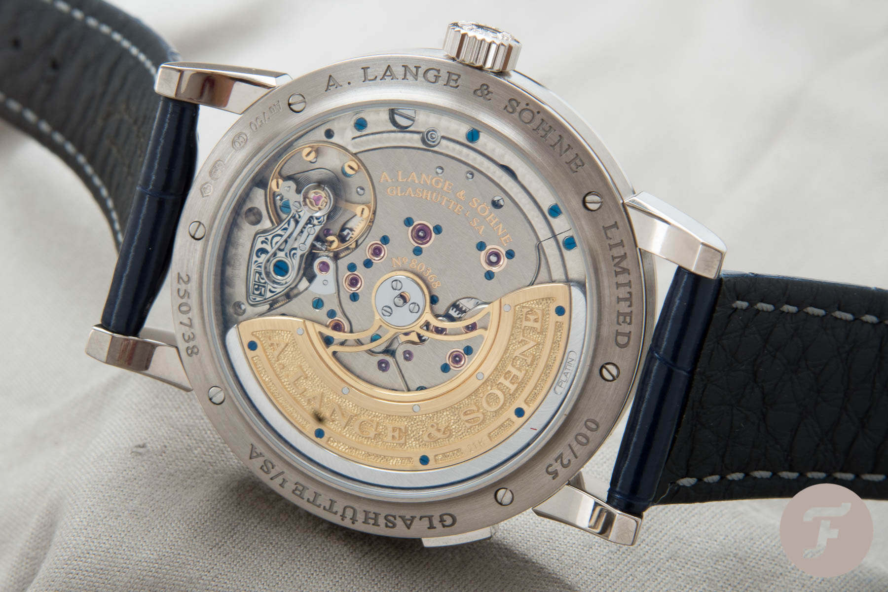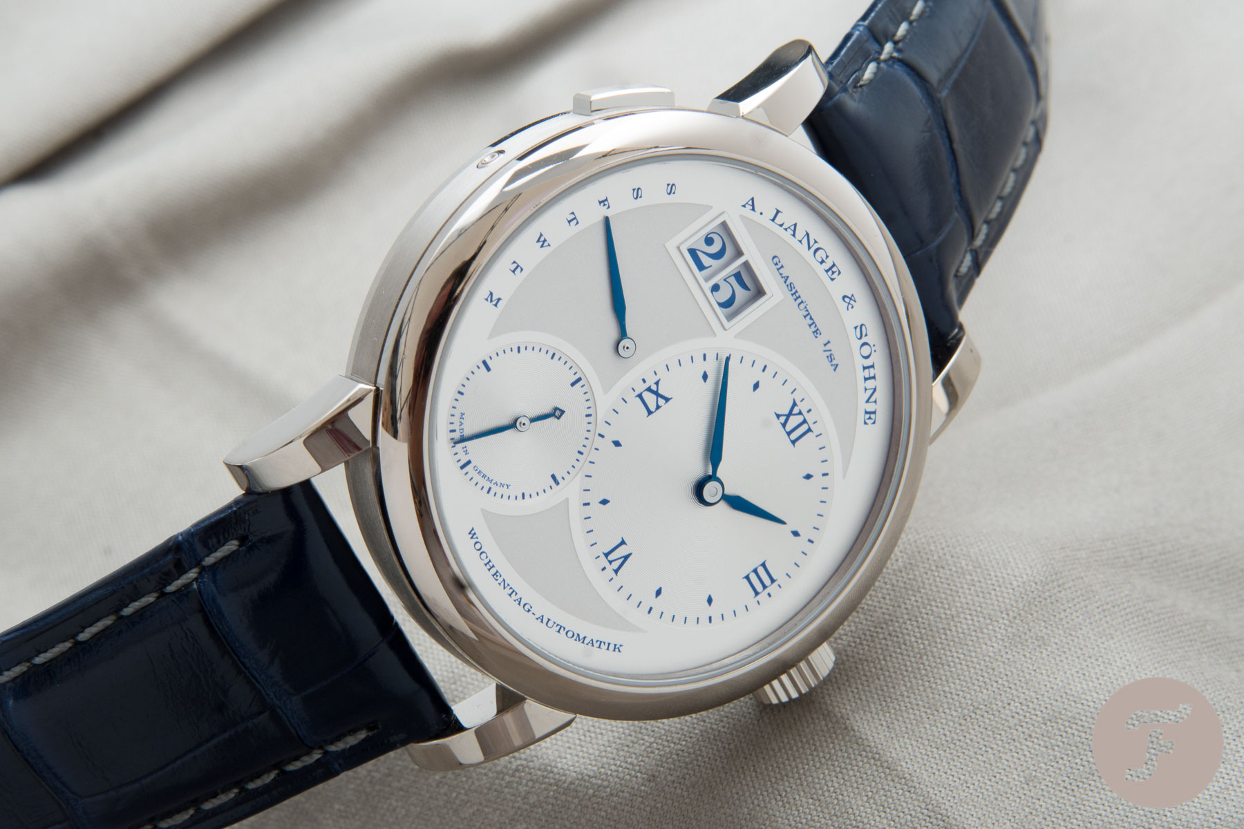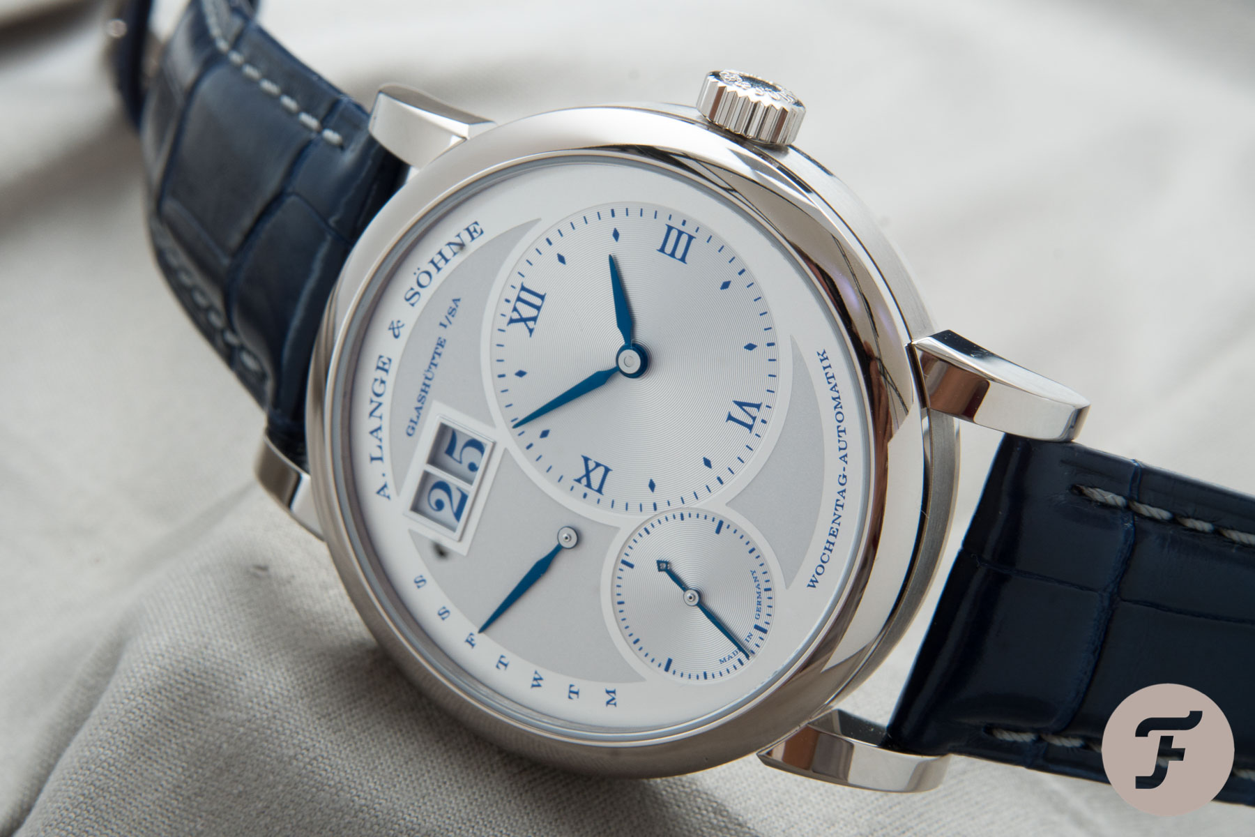 This weekend, the Lange 1 Daymatic 25th Anniversary limited edition is presented to the public. First introduced in 2010 as the automatic version of the Lange 1. Most striking is the mirrored display which has the hours and minutes on the right. The small seconds and large digital date sit on the left side of the dial. Because the Lange 1 watch has an automatic movement, the power reserve indicator is replaced by a retrograde weekday display. The higher this hand moves, the closer to the weekend it is. Don’t know if they did this for a reason, but for some, it may feel like getting more energetic towards the weekend.