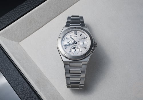 Despite the perpetual calendar’s complexity, the watch retains the Ingenieur’s standard 10-bar water resistance. No doubt, the lack of extra holes for calendar correctors aids in this, as the caliber allows the wearer to make all adjustments via the crown. Overall, the Ingenieur Perpetual Calendar 41 ref. IW334904 is a handsome watch that looks like a tool but offers high-horology complications. It retails for €44,100 / US$44,000 / CHF 41,000.