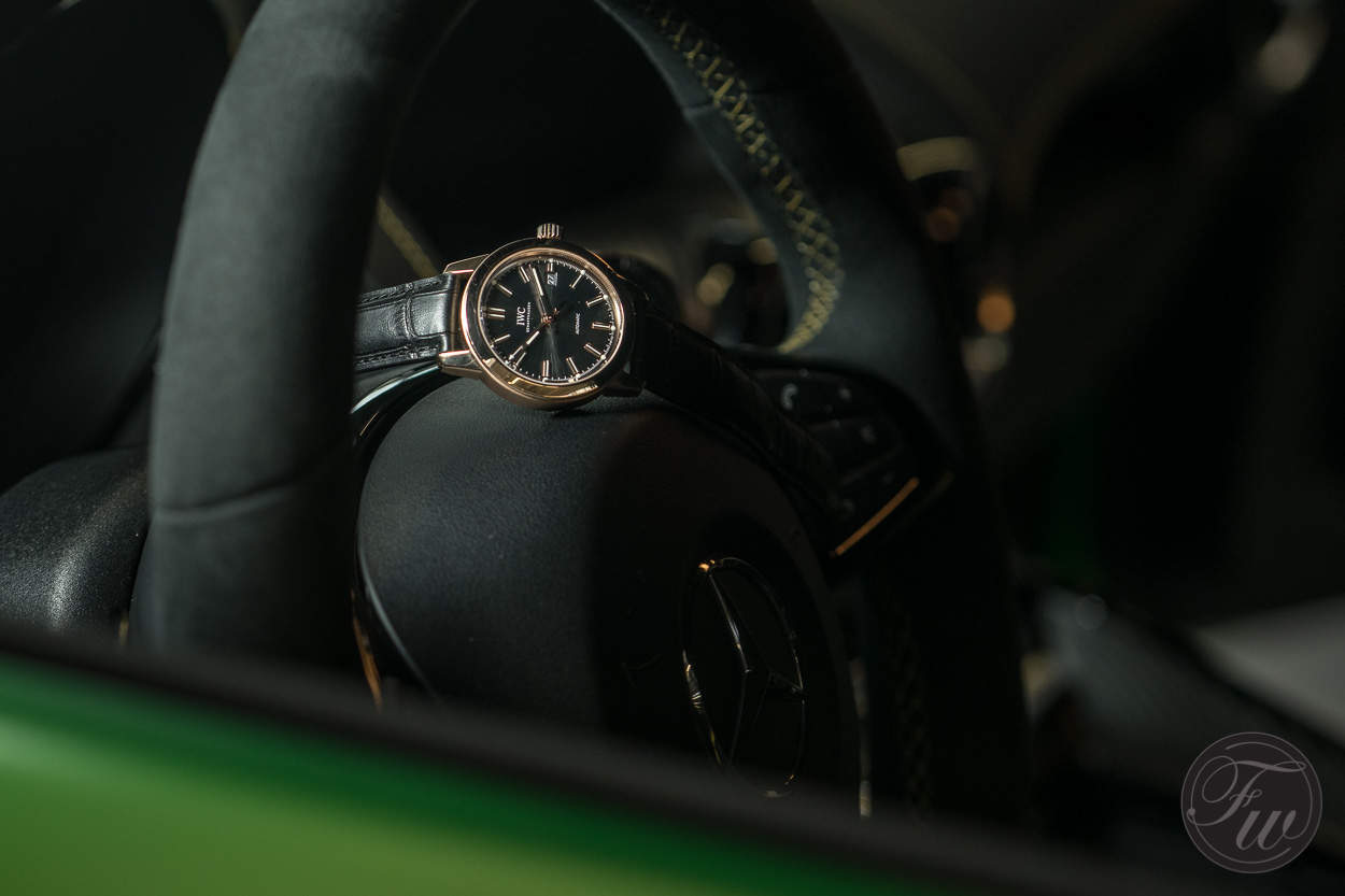 Upon our return we find our way to the AMG workshops where the cars are being maintained. We see privately owned cars as well as the F1 Safety car and various AMG Driving Experience cars being worked on. Here we get access to an AMG GT-R, the anniversary AMG GT-50 and a classic 300 SEL AMG. Combine that with the IWC Ingenieur Chronograph Sport Edition and a case full of other new IWC ingenieur timepieces and you can imagine we had the photo shoot of a lifetime. It was great to see how we all helped each other creating some stunning images. Either by helping to create the right conditions or by setting up compositions.