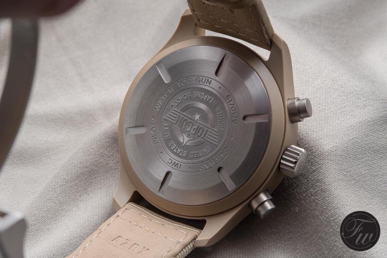 The TOP GUN collection is part of IWC’s Pilot family for 12 years now. It was 2007 when the brand and the U.S. Navy Strike Fighter Tactics Instructor program went into collaboration, which resulted in the first TOP GUN models. Through this 12-year period, many different variants came out with the main common feature being the black case of the watches. The dials might have been deep dark or matte black with different colors on the indexes, but this “special” case color always remained. It added to the TOP GUN feel, making the timepieces look more military-grade-esque. To continue this path in 2019 the designers in Schaffhausen put a great emphasis on the TOP GUN models’ case materials. Ceratanium for the Pilot’s Watch Double Chronograph TOP GUN Ceratanium and a sand-color ceramic case for the “Mojave Desert” edition. A case color that’s something IWC has not done before.