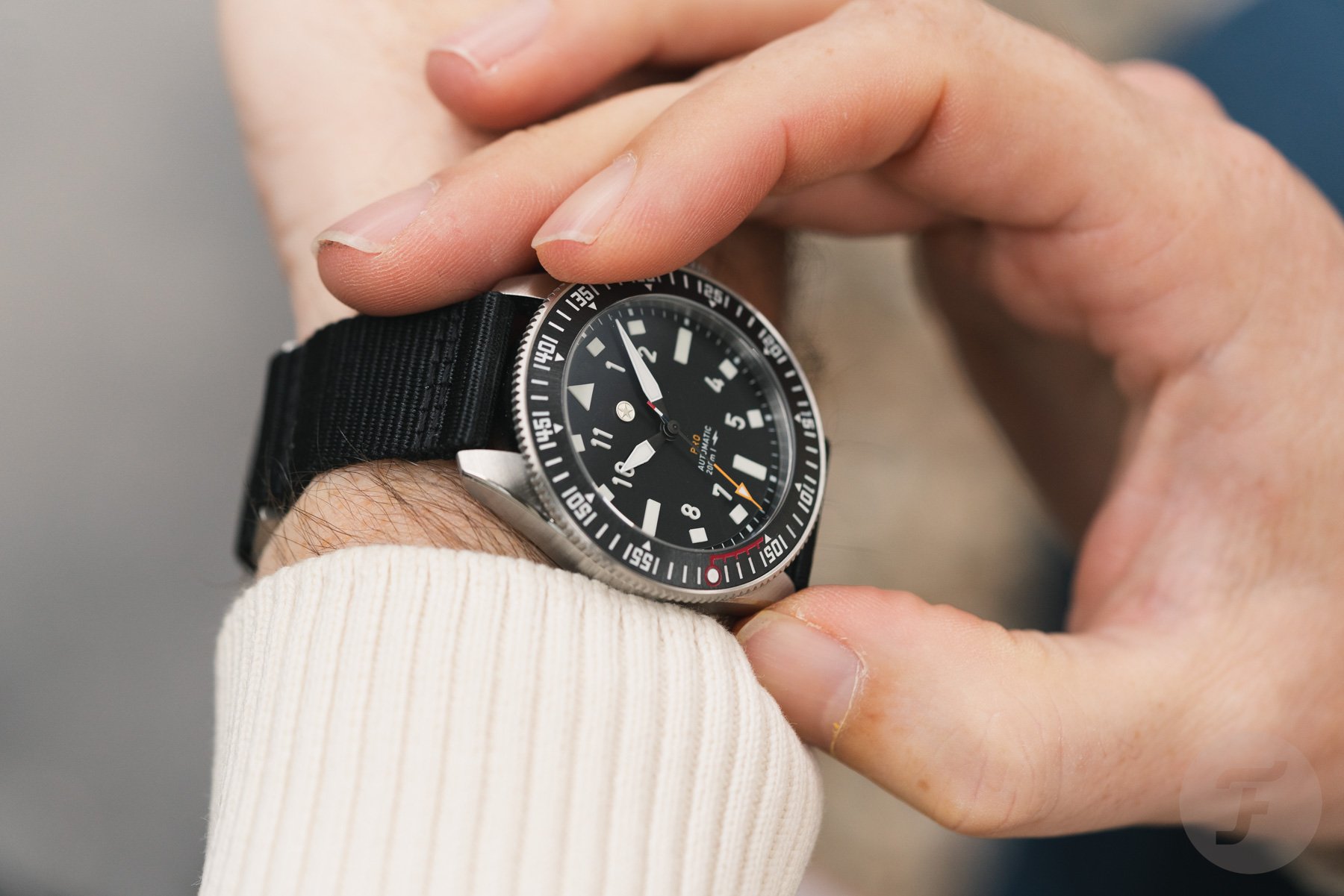 Another thing I liked was the overall proportions. The 40mm diameter will hit the sweet spot for many enthusiasts, and the 12.5mm profile isn’t too chunky. Because of this, the Pursuit Pro sits very comfortably on the wrist. The sturdy yet comfortable nylon straps also balance the watch nicely. Another sign of quality is the crown. Unscrewing it and operating the movement inspires more confidence that the watch is ready for any adventure you have planned.