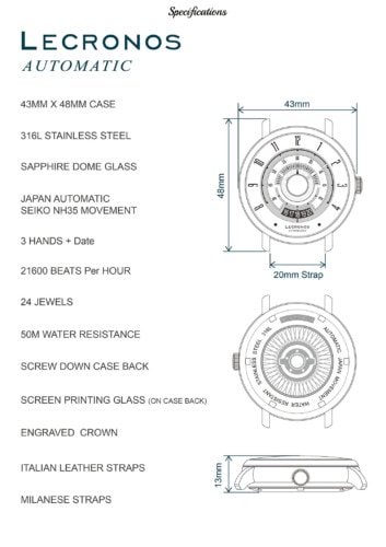 LECRONOS is inspired by the word of ‘chronometer’, meaning high accuracy and precise. The second collection – The “Race for vintage collection” is a nod to the features of classic sports cars. The vintage tachometer featured a dial design at its core, equipped with a reputable Japanese automatic movement. They also offer interchangeable Milanese strap and racing style Italian calf leather strap. Besides, they used an innovative approach to differentiate both the hour-hand and minute-hand.