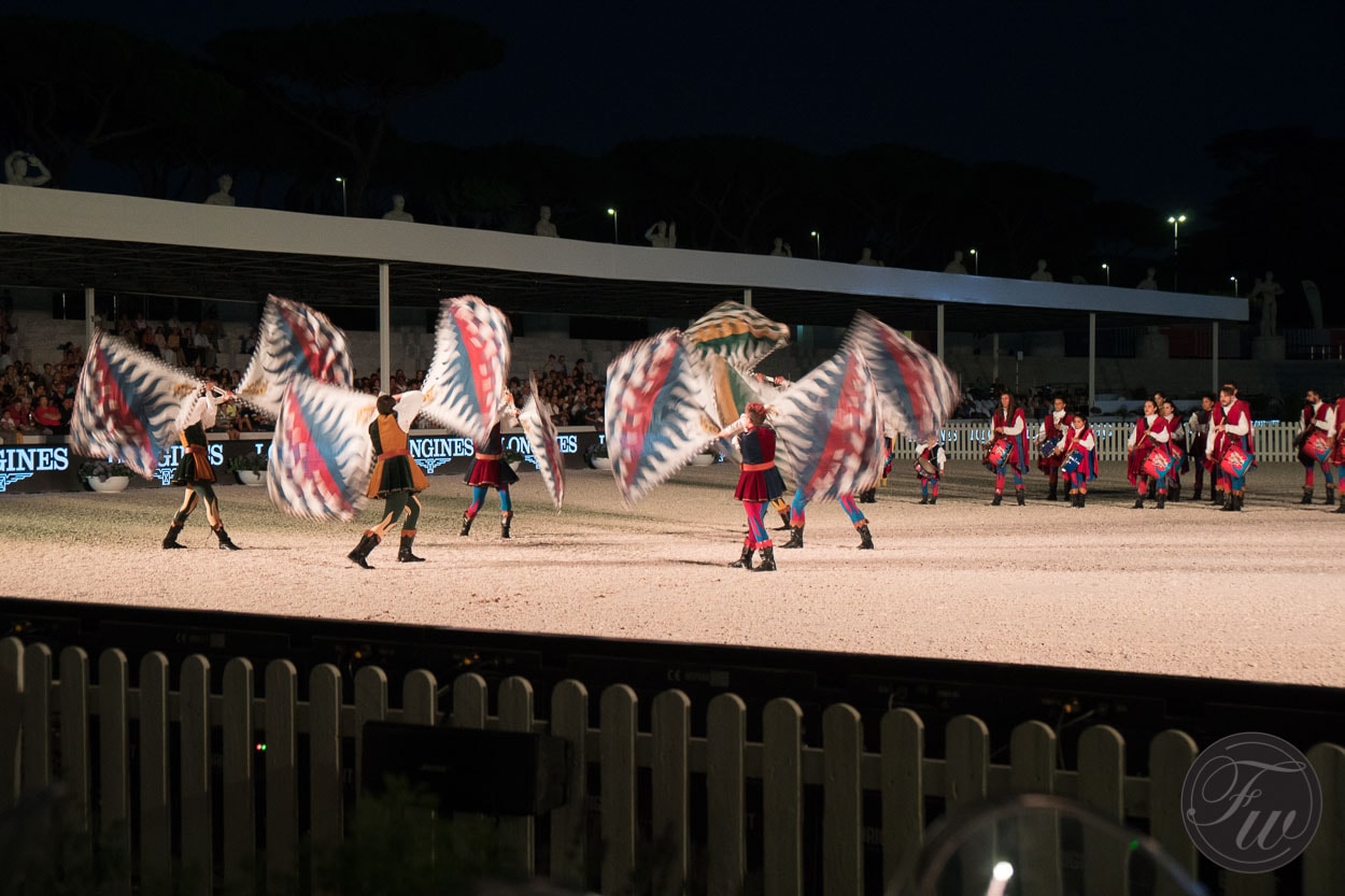 Even without much knowledge about equestrian sports in general it was very impressive to see. After the fast-paced competition we enjoyed an evening filled with a variety of shows. Including the ‘Lancieri di Montebello’ which is the only mounted squadron in the Italian Army. Fully dressed in a a late 19th century uniform with ash wood lances showing the equestrian skill and the historical formation of a cavalry regiment.
