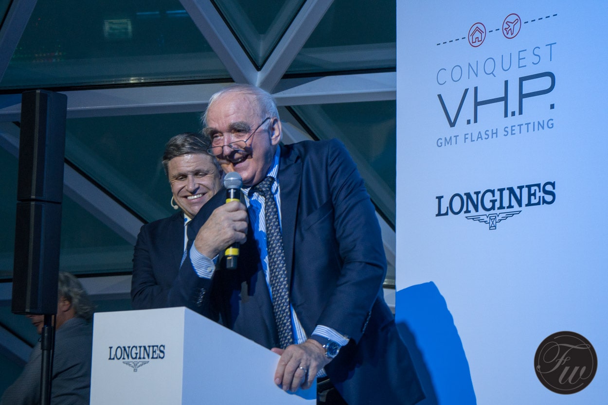 After all guests had gathered at the ‘La Lanterna‘, the man himself, Walter von Känel (president of Longines) with Juan-Carlos Capelli (Vice-President and Head of International Marketing) at his side presented the addition to the V.H.P. line. Proudly presenting the Longines Conquest VHP GMT Flash Setting. As this new watch is aimed at globetrotters, the event and the launch of their new media campaign is focussed on travelling.