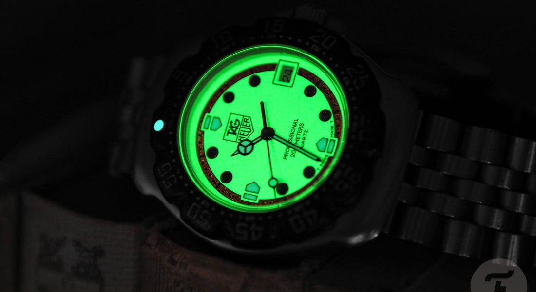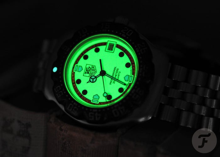 Admittedly, I’ve only recently been able to experience the pleasures of owning a watch with a fully luminous dial. You see, I am now the proud owner of a vintage TAG Heuer Formula 1 quartz watch, specifically, a reference WA1211. This is from the classic TAG Heuer F1 line, and this specific reference was introduced in the late 1980s (records suggest 1987).