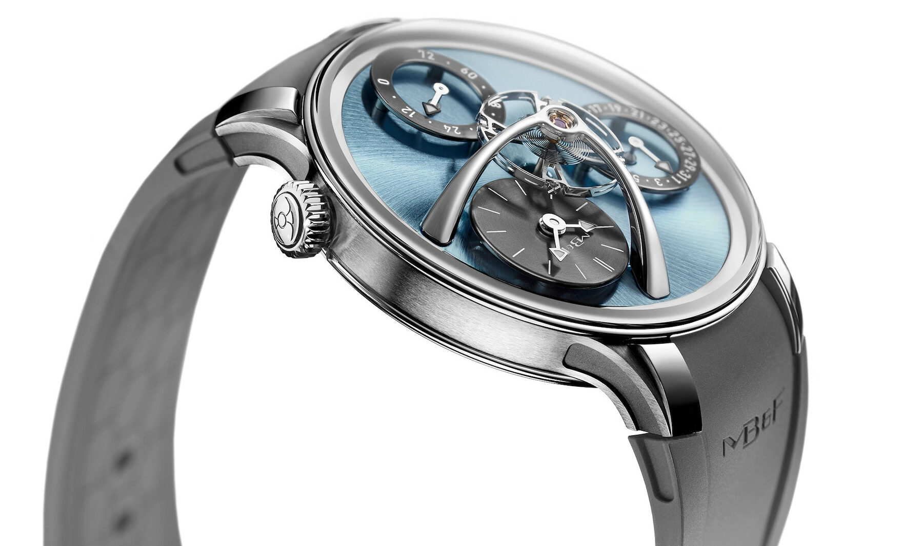 But the dial of the limited edition certainly looks different, and there is a very good reason for that. Black and blue are the corporate colors of Westime, whose Beverly Hills location is hosting one of MB&F’s first LABs. This is a retail concept introduced for locations that aren’t big enough to host an actual M.A.D. Gallery. To celebrate this occasion, MB&F introduces the Beverly Hills limited edition in collaboration with Westime. There will be 25 pieces of this version with a black base plate and blue sub-dials.