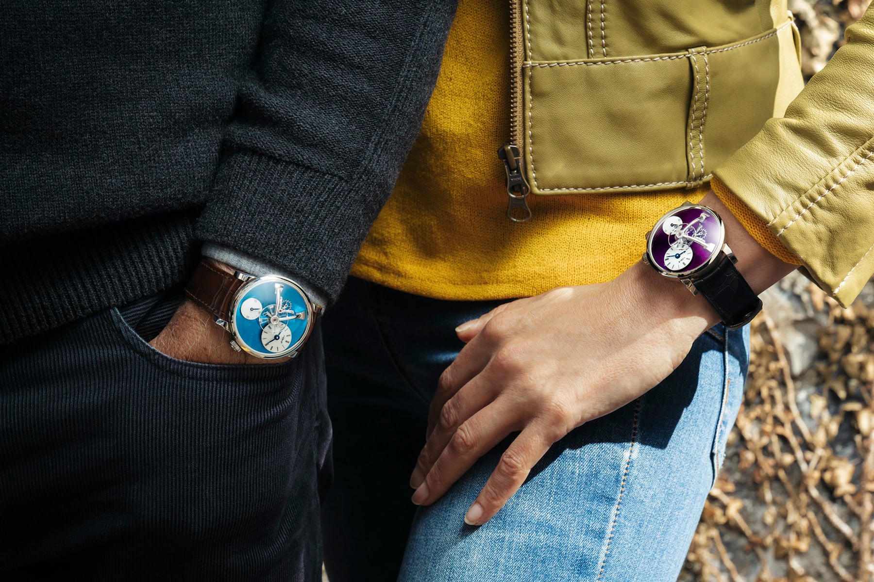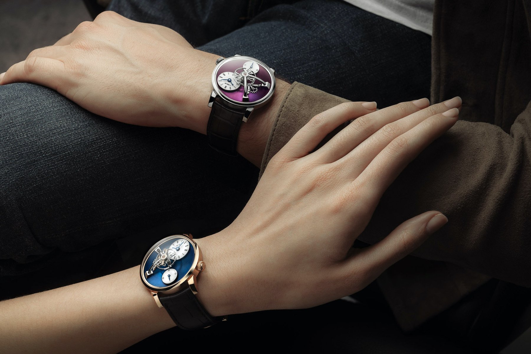 LM101 Red Gold (royal blue dial) and White Gold (purple dial): CHF 59,000 + VAT