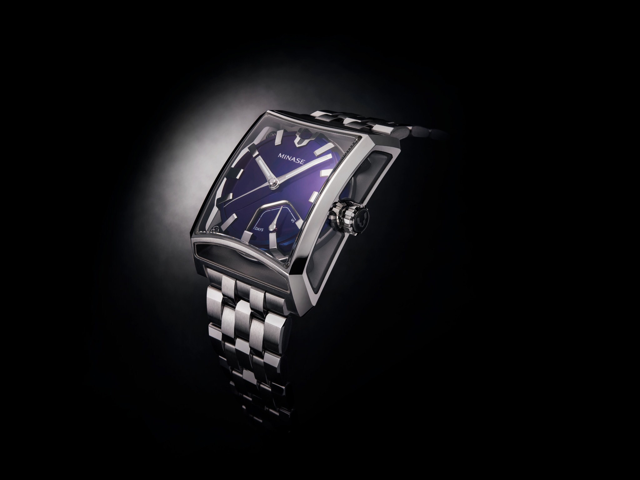 With an annual production of only 500 pieces, Minase timekeepers were only available in Japan until last year. To celebrate the arrival of the brand in the international markets, Minase created the 7 WINDOWS, a limited edition of 40 pieces that breaks with regular watch design conventions with its 7 sapphire windows (crystals) surrounding the case. Completely hand-made, the 7 sapphire crystals give the impression that the dial is floating on the inside of the rectangular case.