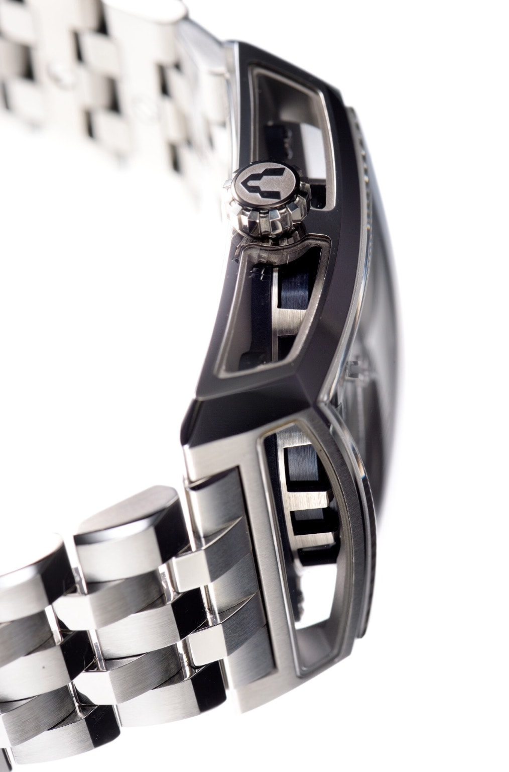 All of its facets are hand-polished and brushed using the rare Sallaz technique. The process requires hours of meticulous work but gives the watch a inherent brilliance.
