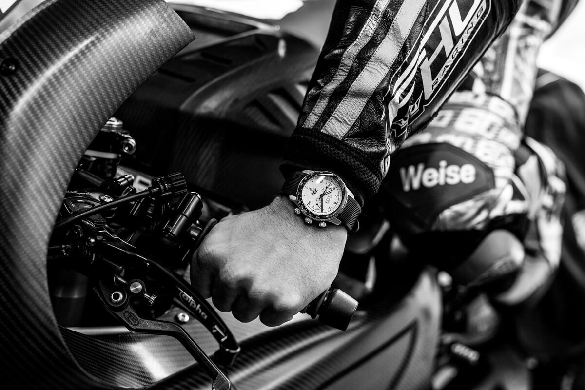 You can get an impression of how it wears by looking at the wrist of Bremont brand ambassador Peter Hickman. The watch and rider make for quite the combination. “Hicky” is the fastest man ever to have completed the very tricky course at an average speed of 135mph.