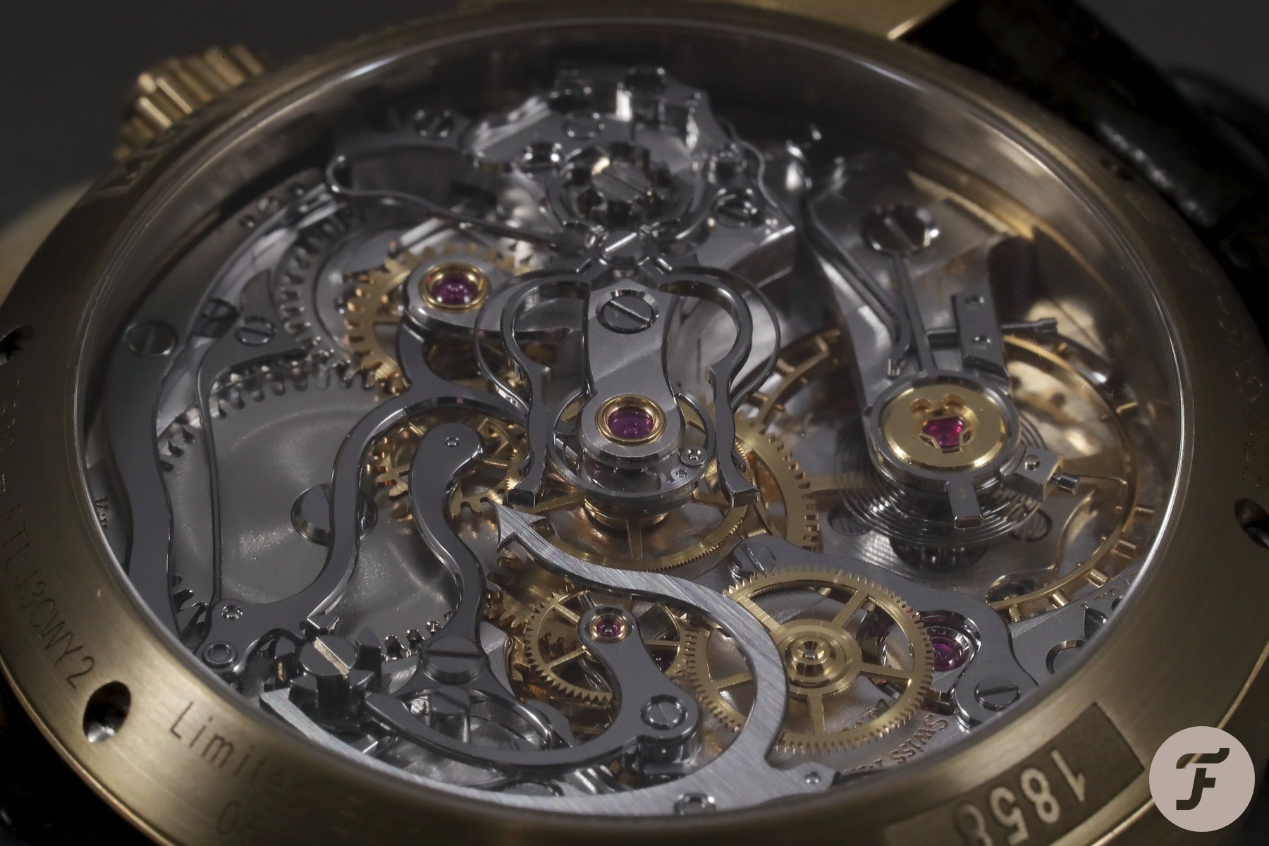 At last year’s SIHH Montblanc presented the 1858 Split Second Chronograph, providing a complication that is also known as a “Rattrapante”. This watch comes in a vintage design and with a movement in a typical traditional layout. The finishing of this movement is breathtaking. The actual sensation about this watch is its price.