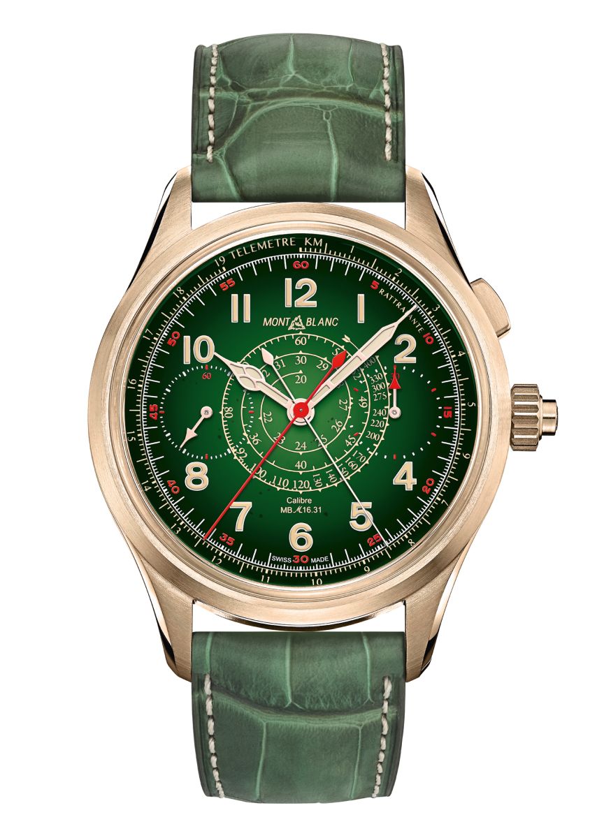 At the 2019 edition of SIAR (Salón Internacional Alta Relojería), a major watch fair for Latin America located in México, Montblanc presented a special edition 1858 Split Second Chronograph consisting of eight pieces with the same bronze case as the standard edition but a smoked green dial made of nephrite jade. This version cost €39,500 and was available at Montblanc Boutiques in Mexico only.