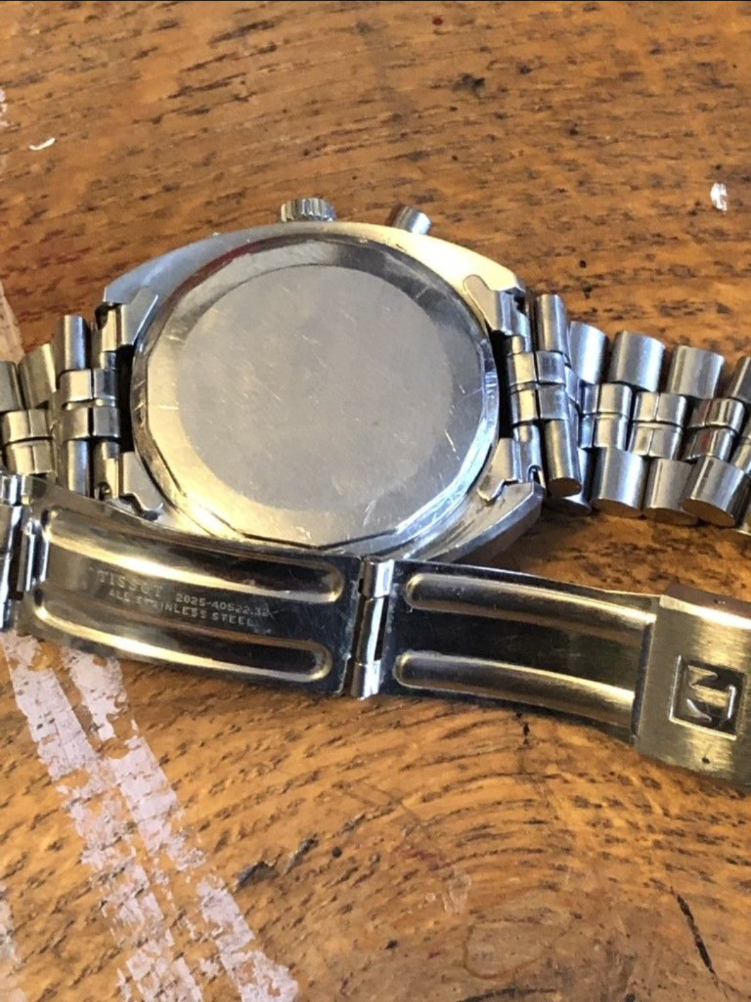 Having had a look at other listings of this watch for the purpose of writing this article, I can see that finding it on the original 5-link bracelet is quite rare. The bracelet itself is signed “Tissot 2025-40522.32 All stainless steel”, and is as rattly and flexible as you might expect. However, having tried the watch on leather as well as on the bracelet, I have to say that it actually wears extremely comfortably. The flex and rattle off the wrist translate to flexibility and comfort on the wrist. Plus, the fitting end-links, when well adjusted, fit the case perfectly and elevate the overall look of the watch, as well as the wearing experience. There’s just something special about having the complete watch.