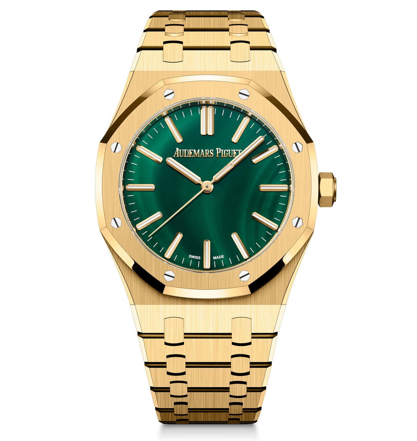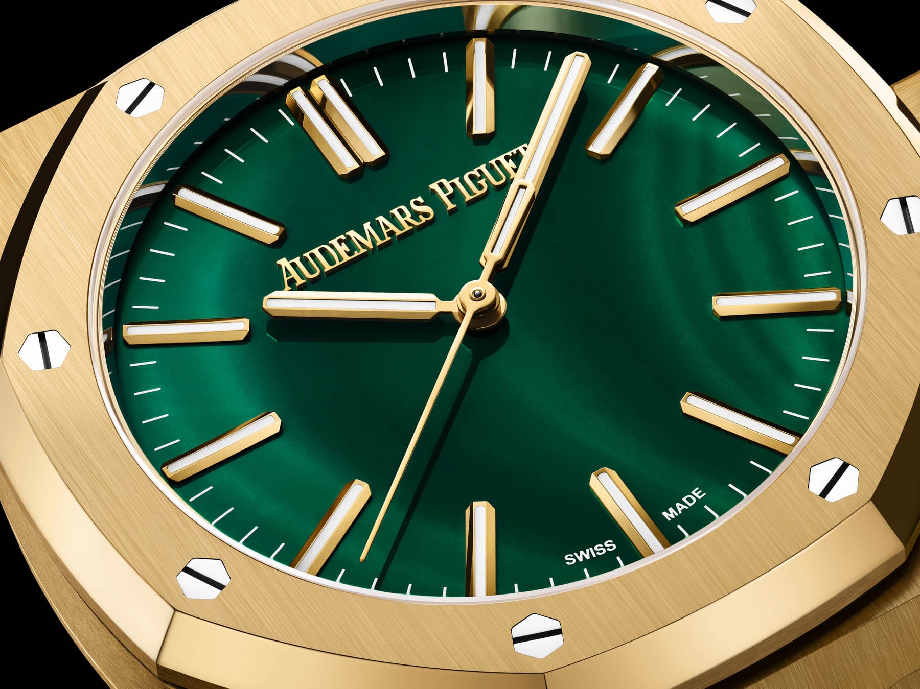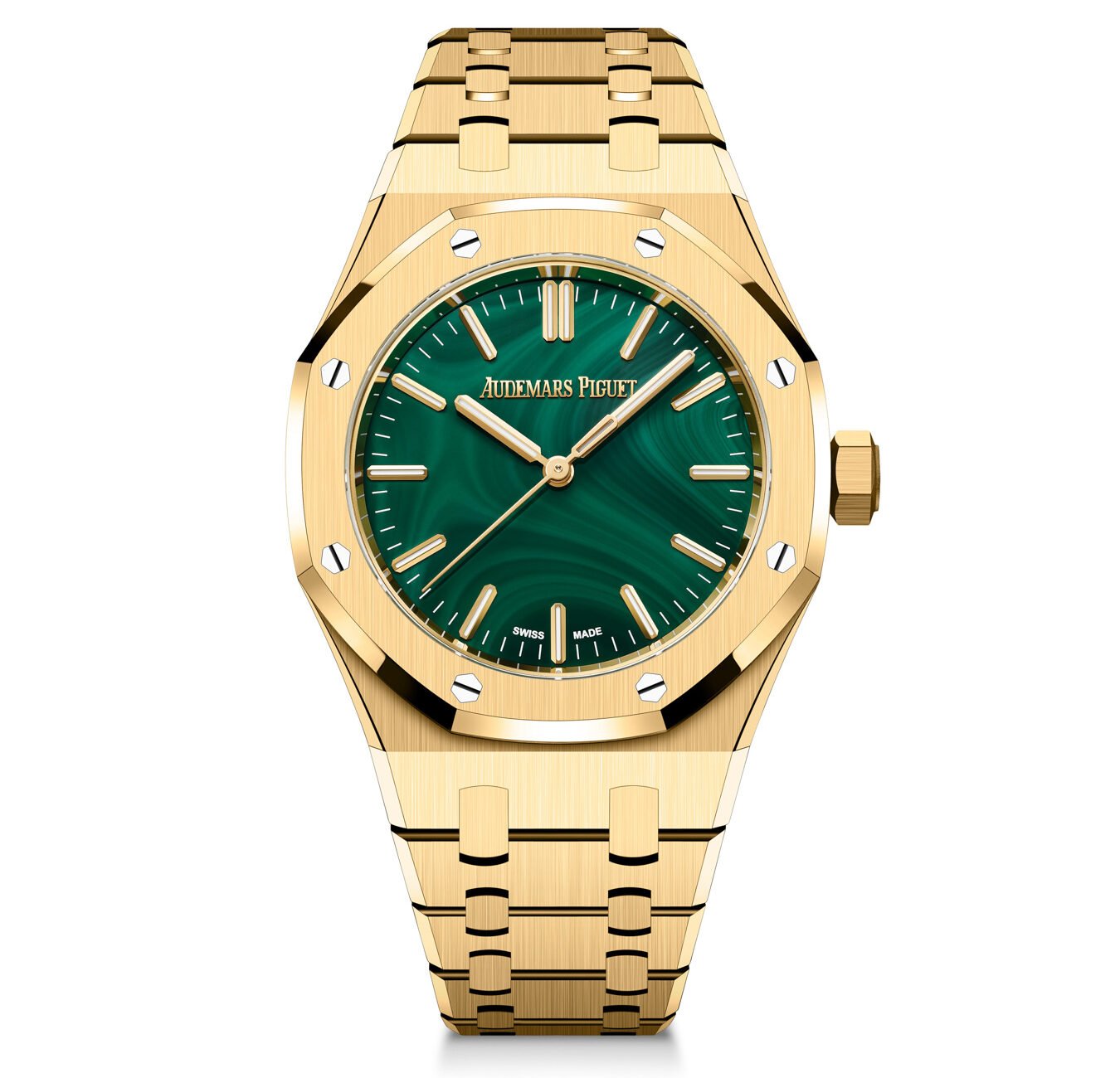 In 2026, the malachite stone dial finds its way into the regular catalog for the 37mm and 41mm self-winding Royal Oaks.