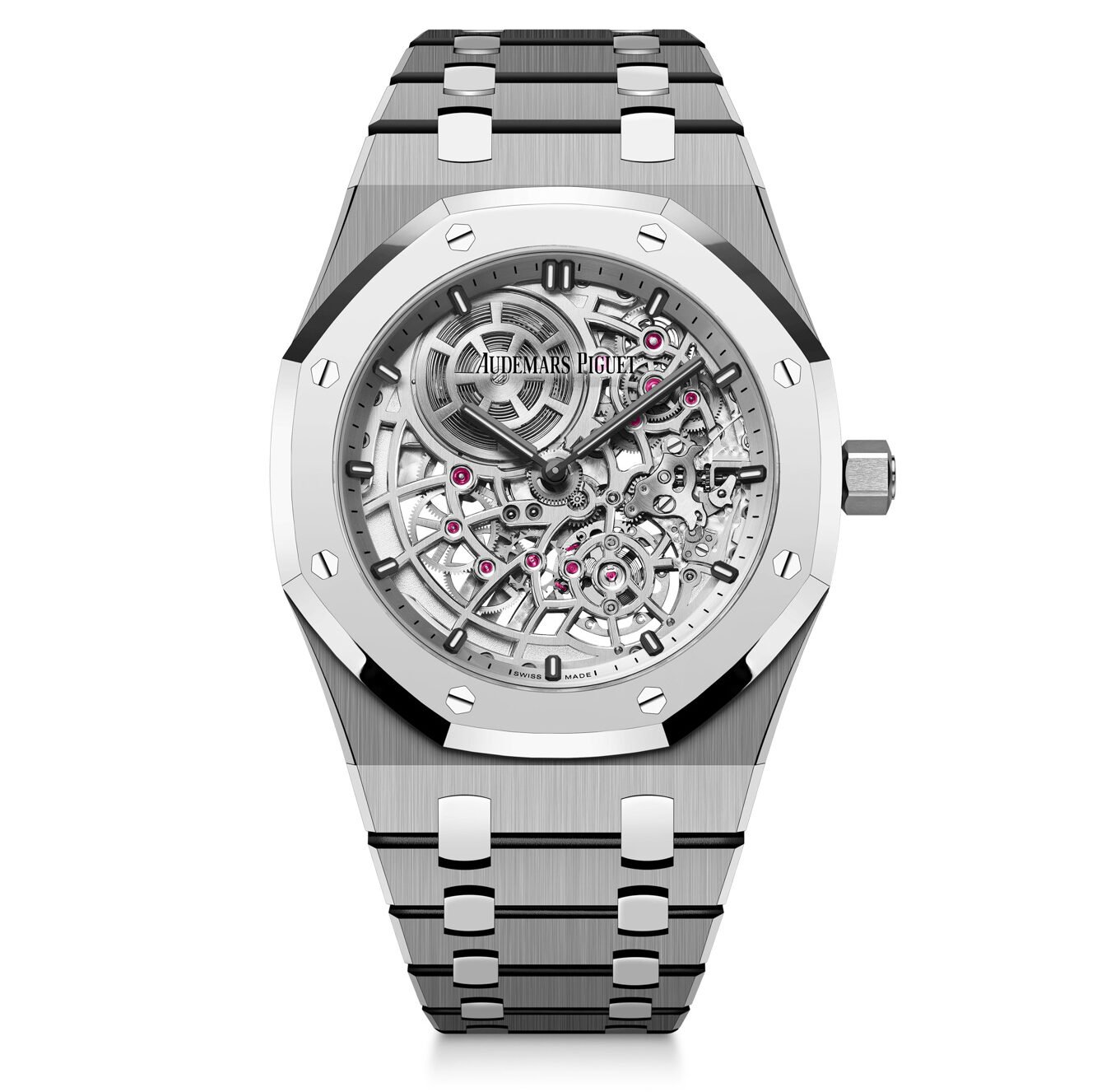 Following that, the 39mm Royal Oak “Jumbo” received skeletonized editions in 2012 and 2014, and the 41mm Royal Oak Openworked in 2016 featured a Double Balance Wheel movement.
