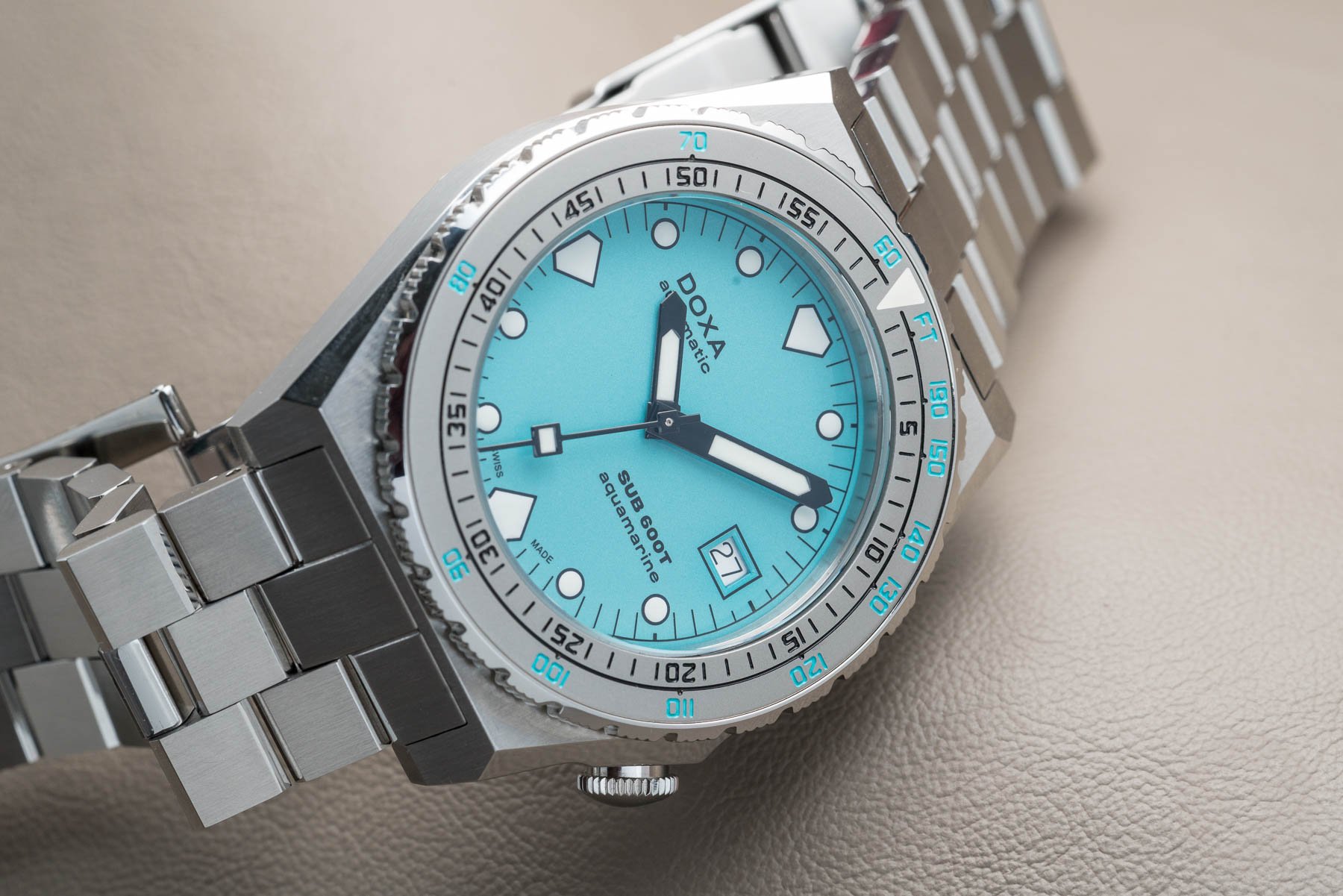 Allow me to introduce you to the Doxa SUB 600T. Or should I say, “re-introduce”? That’s right, if you’ve been paying attention to what Doxa has been doing this year, you won’t have missed the sneak preview of the SUB 600T. This came about in the form of a limited edition SUB 600T Pacific. In essence, this was the same as the new production models, but in titanium and with a slightly different color. If you weren’t one of the lucky 200 that took one home, you now get a second chance! Actually, it’s more like 24 different chances, as this is the number of possible color/bezel/bracelet/strap combinations. Doxa lovers, rejoice!