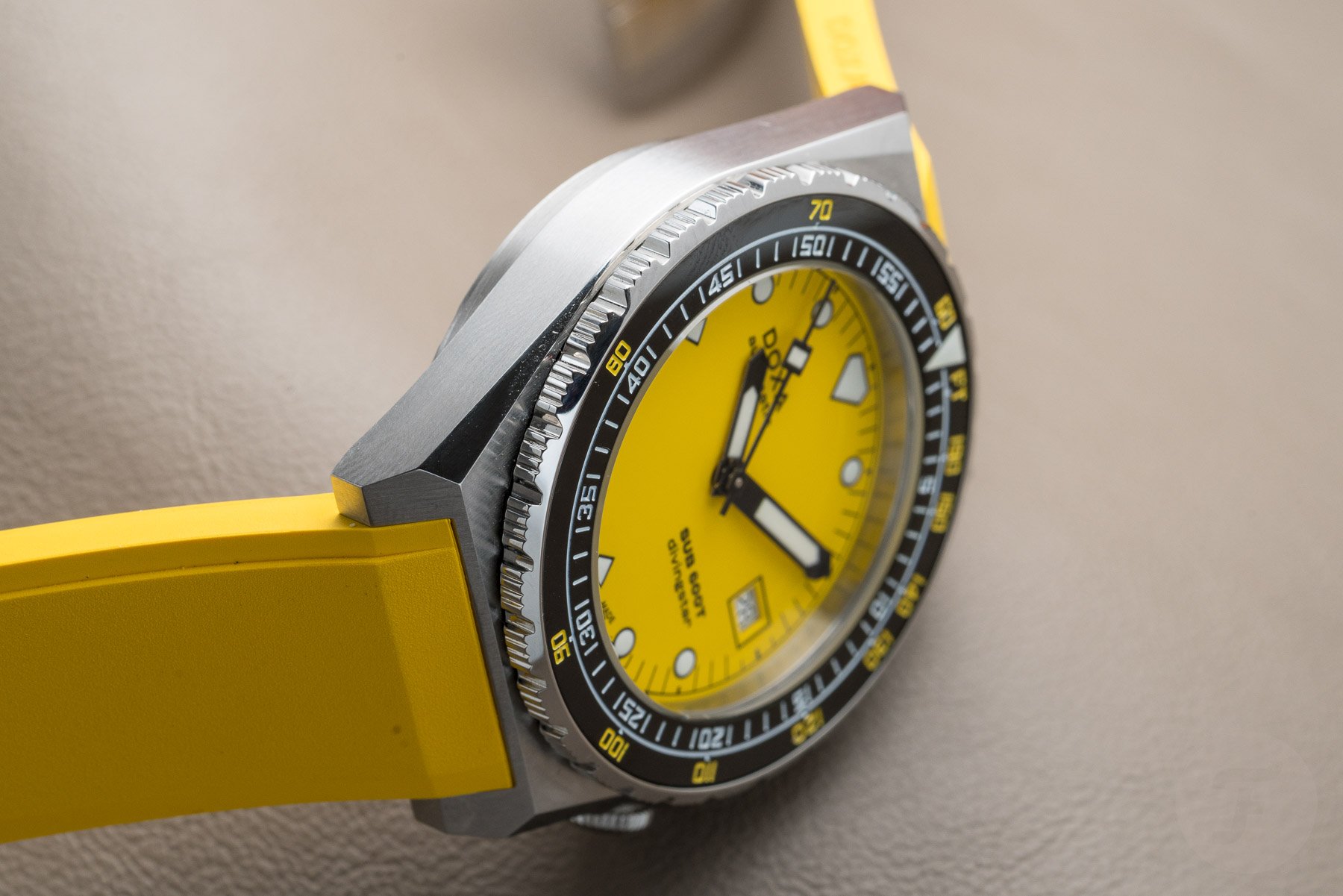 There’s nothing worse than getting stuck in your ways. And when you’re playing with such an impressive back catalog of watches, it’s great to bring back an oddball model. Doxa proved that it can innovate with the release of the SUB 200. It’s vintage-inspired, but feels modern, and yet carries plenty of the brand’s DNA. Going carbon was an undeniably cool move. But now, we drop the curves and go angular. But in true Doxa style, it’s not just a reissue of an old model. An innovative touch in terms of materials is the cherry on top of the new SUB 600T. For more on the history of the SUB 600T and its Divingstar origins in the ’80s, check out Rob’s article on the LE release from earlier this year here.