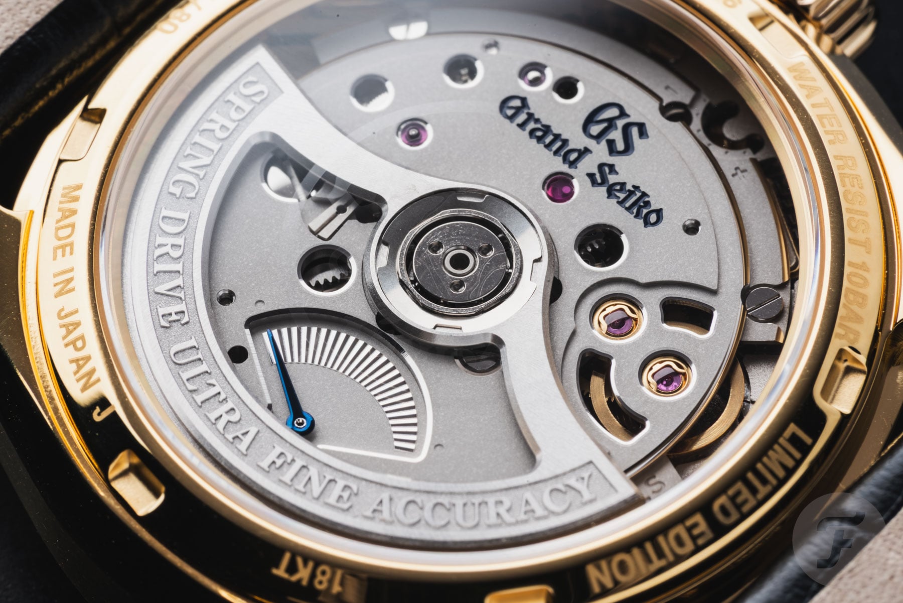 The “Ice Forest at Dawn” is powered by a Spring Drive movement. In this case, it’s Grand Seiko’s caliber 9RB2, offering a 72-hour power reserve. But the autonomy is not its party piece. That is the annual accuracy of ±20 seconds. Yes, this is a U.F.A. movement. The abbreviation stands for “Ultra Fine Accuracy,” and it designates a new standard of precision introduced in 2025. If your Grand Seiko is a U.F.A., it’s the most accurate mainspring-powered watch ever created by the brand. To quickly refresh your memory, a Spring Drive movement incorporates a temperature-compensated quartz oscillator paired with an integrated circuit, along with traditional mainspring energy storage.
