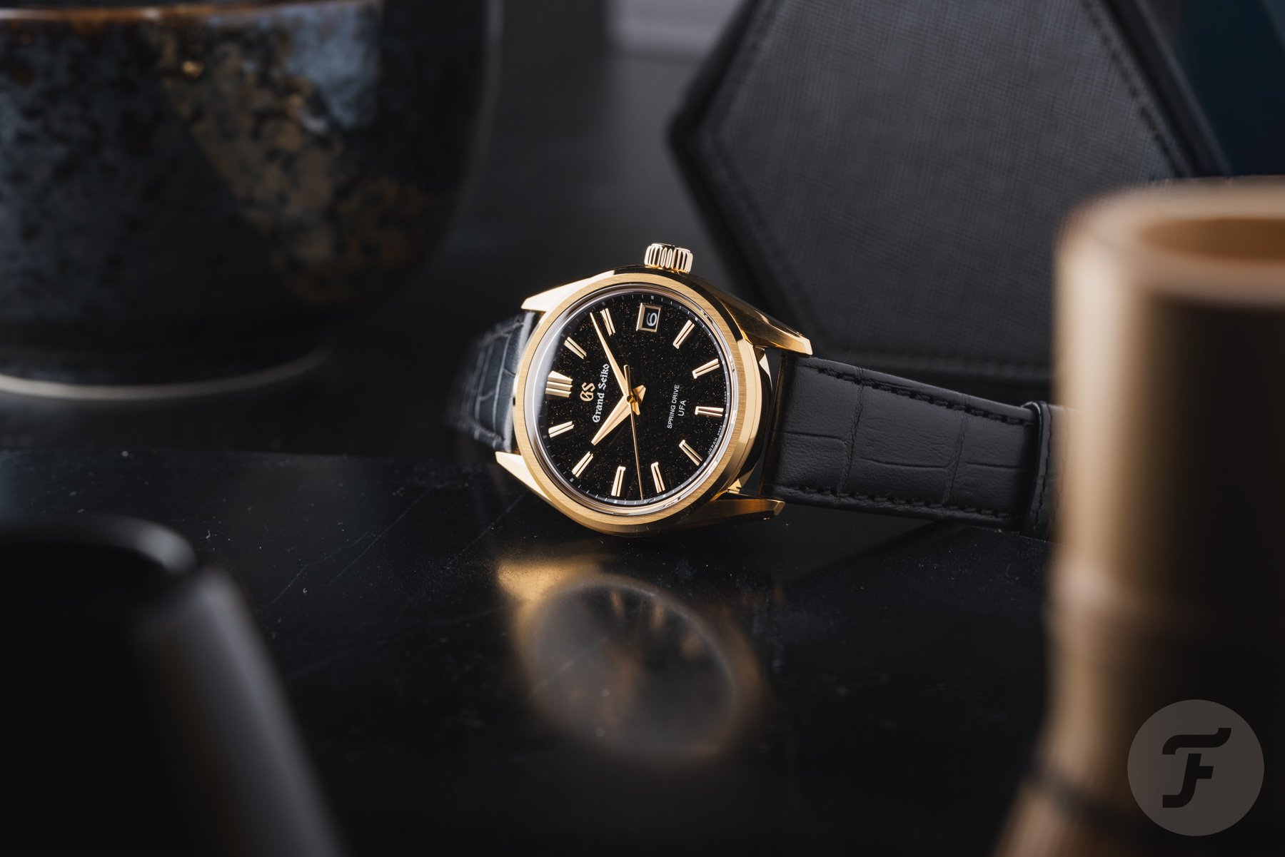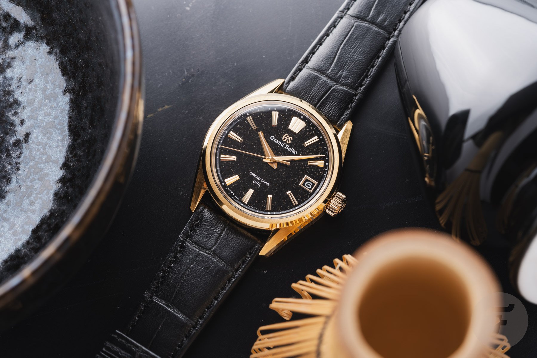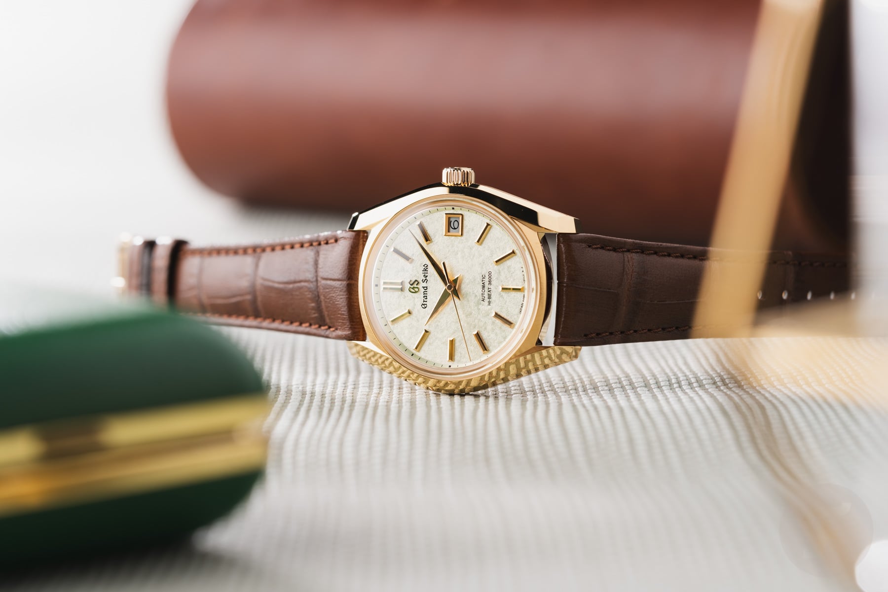 The 62GS SBGH376 “Sakura-Wakaba” comes on a brown crocodile strap with a calfskin lining and matching yellow gold pin buckle. How’s that for a classic combination? The price of the SBGH376 is €33,500 in Europe, and it joins the regular-production lineup.