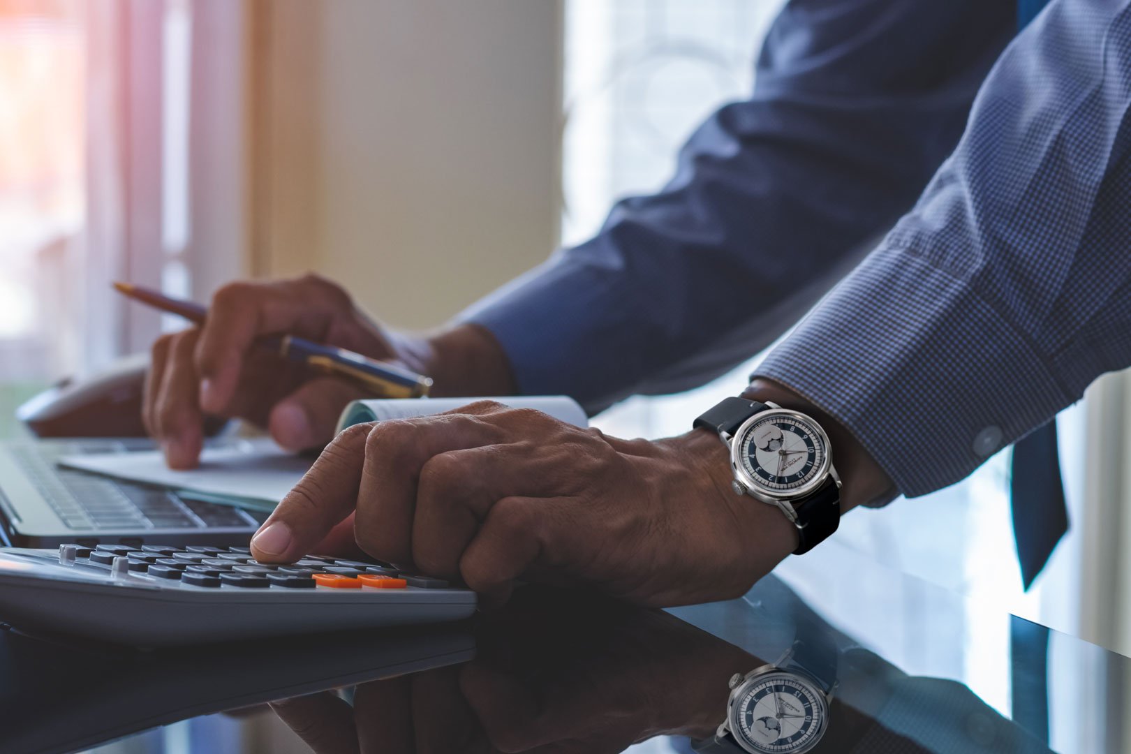 Stylish, thought through, sophisticated… These are just a few words to describe the 35mm Japan-only Raymond Weil Millesime Moon Phase. This limited edition of 100 pieces was brought to life with Masayuki Hirota, the editor-in-chief of Chronos Japan Edition. The small watch is clearly a historically inspired Millesime, with its sector dial marking the hours, minutes, and seconds on distinct tracks. However, the classical moonphase indicator with a smiling moon has been replaced with something more contemporary. The two-tone silver and slate-blue dial shows our Moon’s authentic shadows, recreated using NASA imagery, at 6 o’clock.