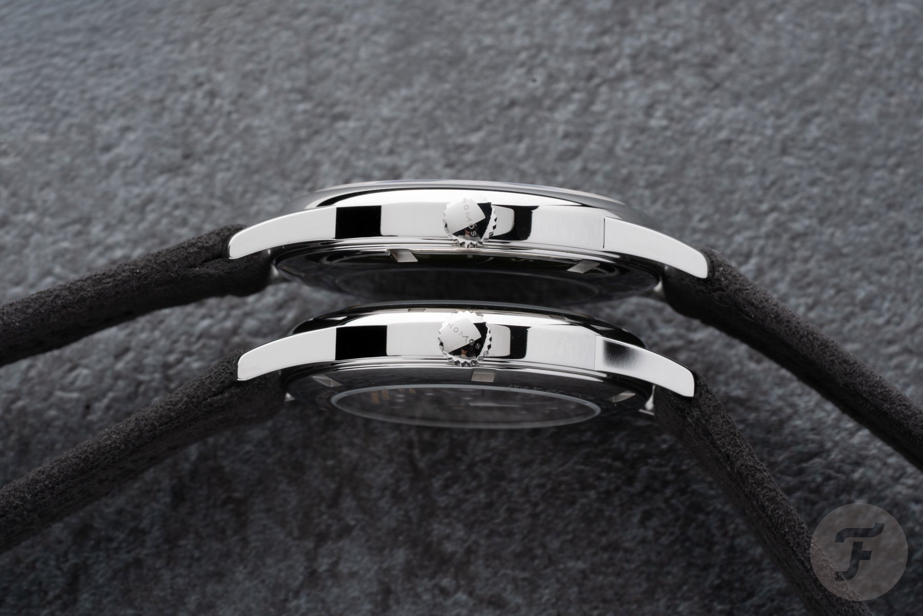 But I would love to see the watch on a lighter strap as well. A fun visual realization was that both models appear to have differently colored straps. Both straps are dark gray, but the effect of the two dial colors is remarkable. In combination with the pink dial, the strap looks lighter. It’s a nice bit of visual trickery.
