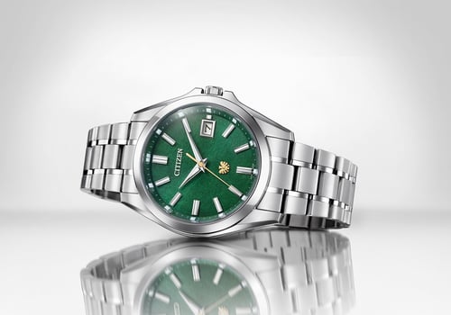 The special green dial sits inside a 40mm × 12.2mm Super Titanium case with a 100m water resistance rating. As some of you might know, Citizen’s proprietary Super Titanium is five times harder and 40% lighter than steel. It makes the material perfectly suited for watches. While the case is predominantly brushed, the lug facets and the bezel have a mirror-polished finish for visual contrast.