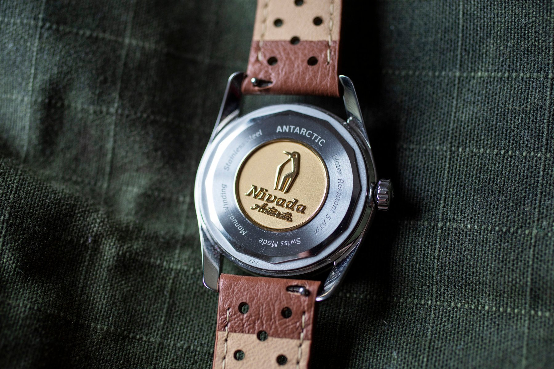Flip the watch over, and you’re greeted by perhaps its most charming feature — a penguin medallion on the case back. It’s a small touch, but it ties the watch unmistakably to its polar heritage. The Antarctic’s story is bound up with penguins, snow, and frozen seas.
