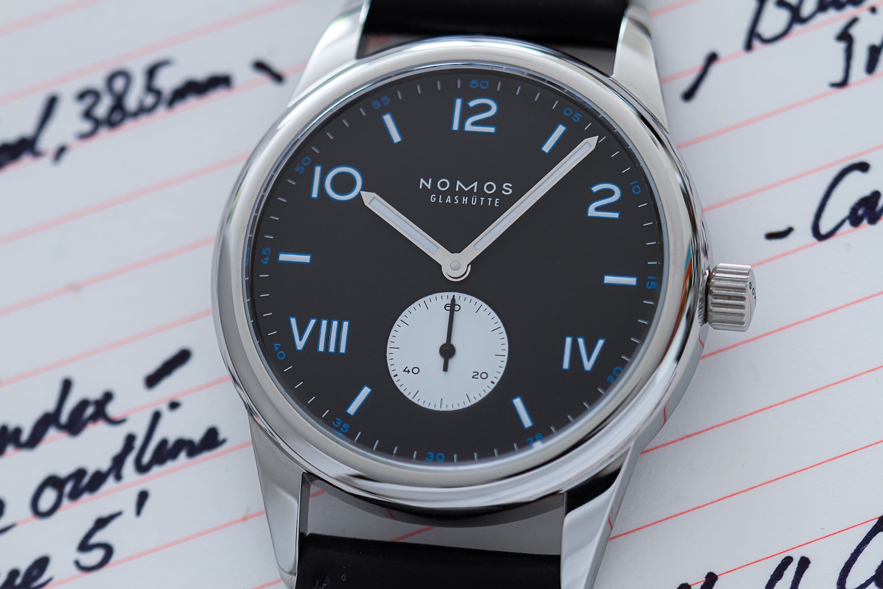 There are two reasons why this watch feels like a dream come true to me. Firstly, my mind shoots back to showing Dale and Jenna of Ace Jewelers around Glashütte on behalf of NOMOS during my time with the company. As is customary, we paid a visit to the NOMOS boutique on the “high street” of Glashütte. The boutique is a popular spot for NOMOS enthusiasts as it stocks a selection of rare, often discontinued pieces that aren’t available anywhere else. While we were there, Dale spotted an old, black-dialed Club that had left the collection sometime prior.